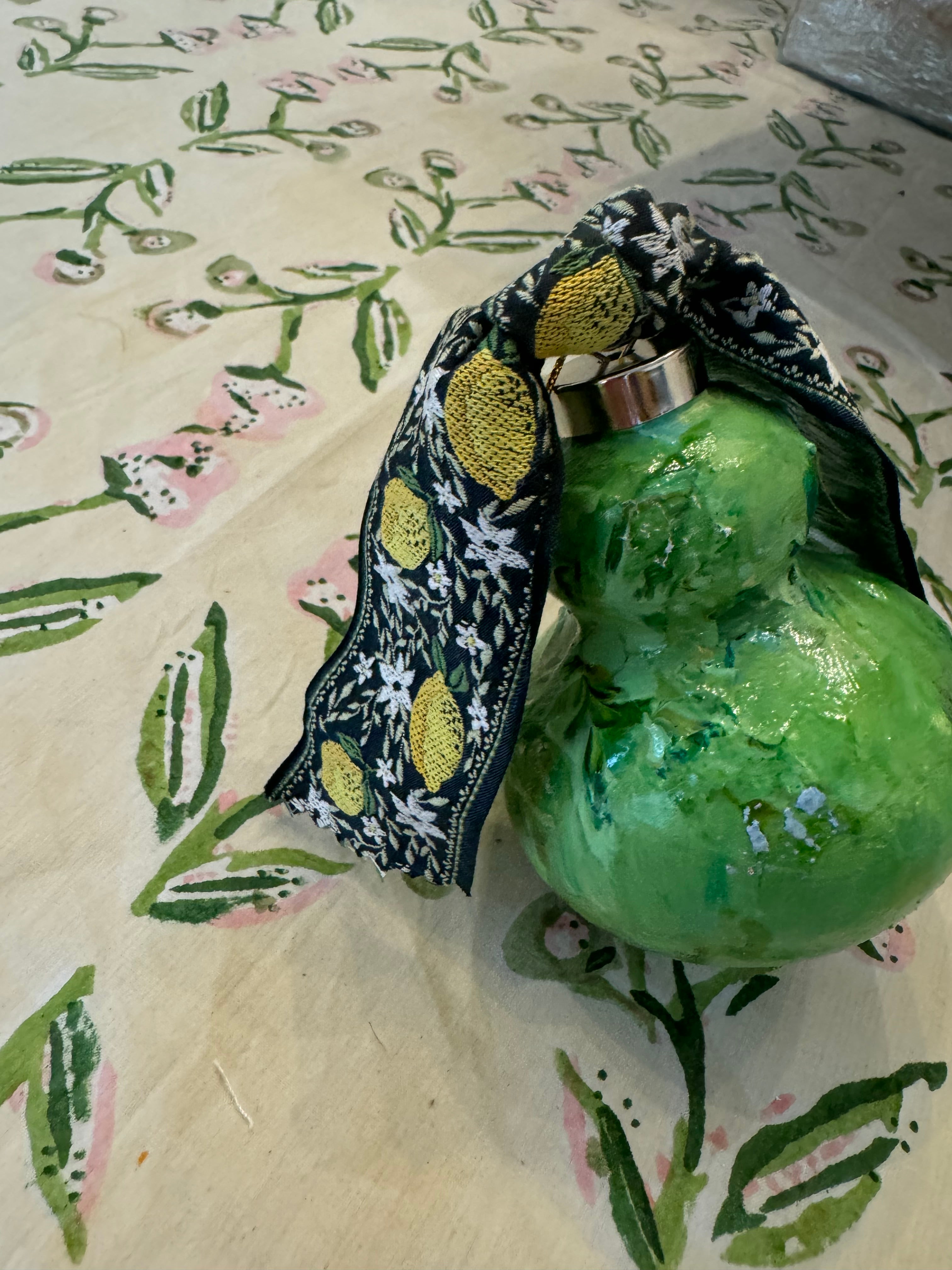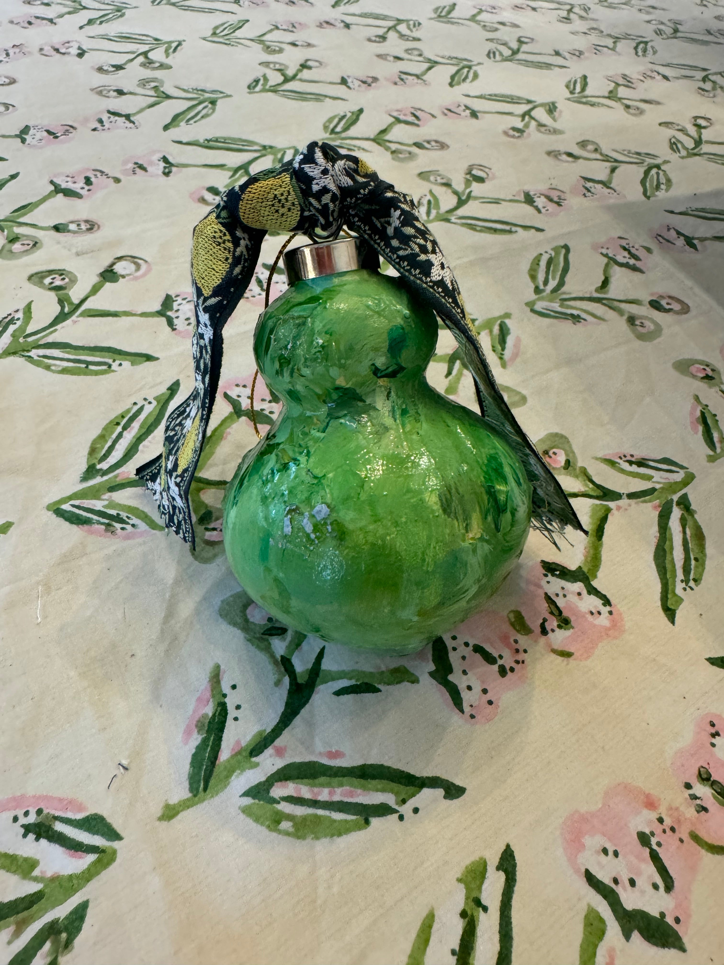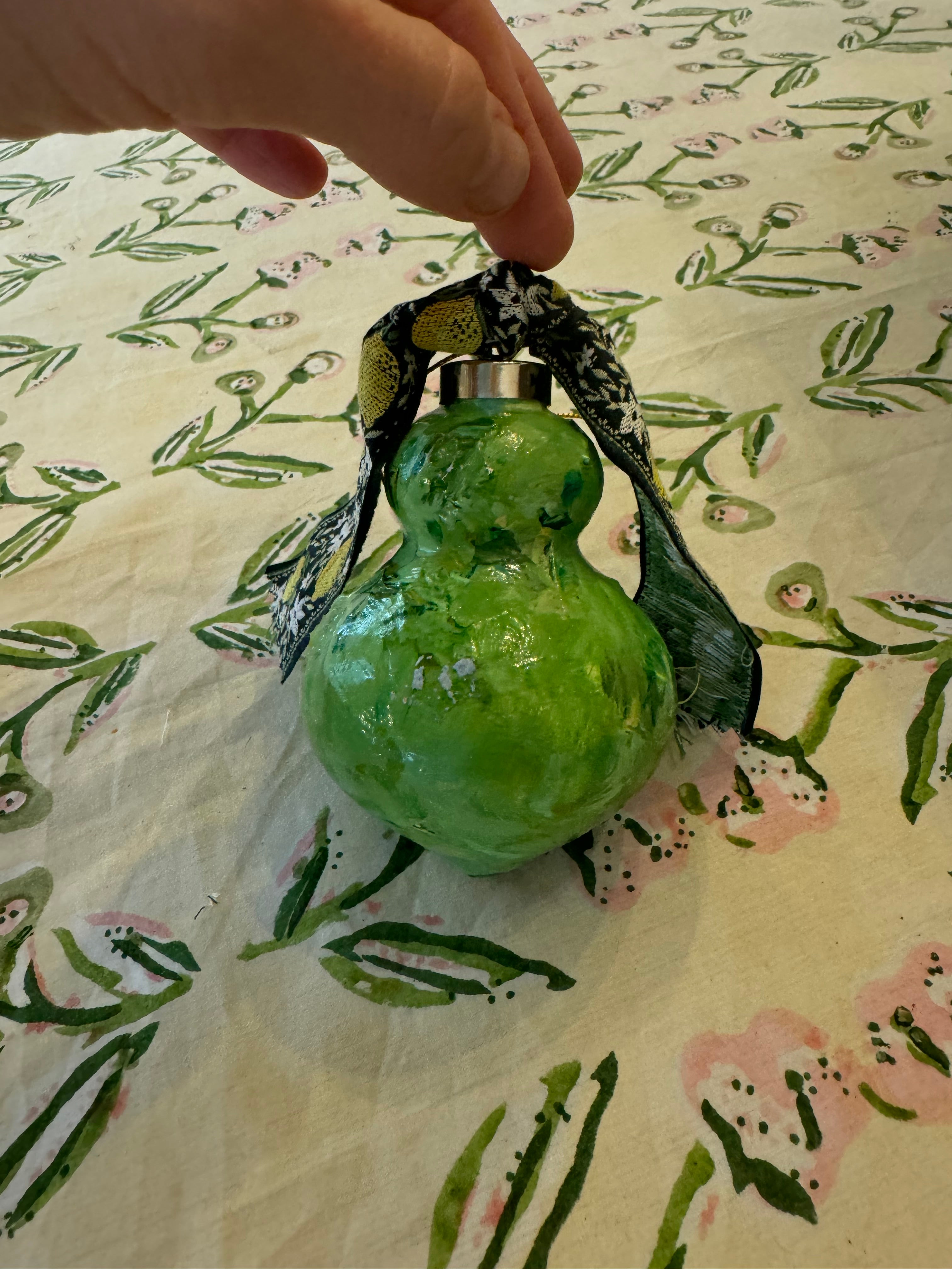Original, hand-painted, one-of-a-kind ceramic ornament painted by Erin in her signature abstract style with a painterly look and feel. Tied with a coordinating ribbon. Varnished and sealed with a satin finish.