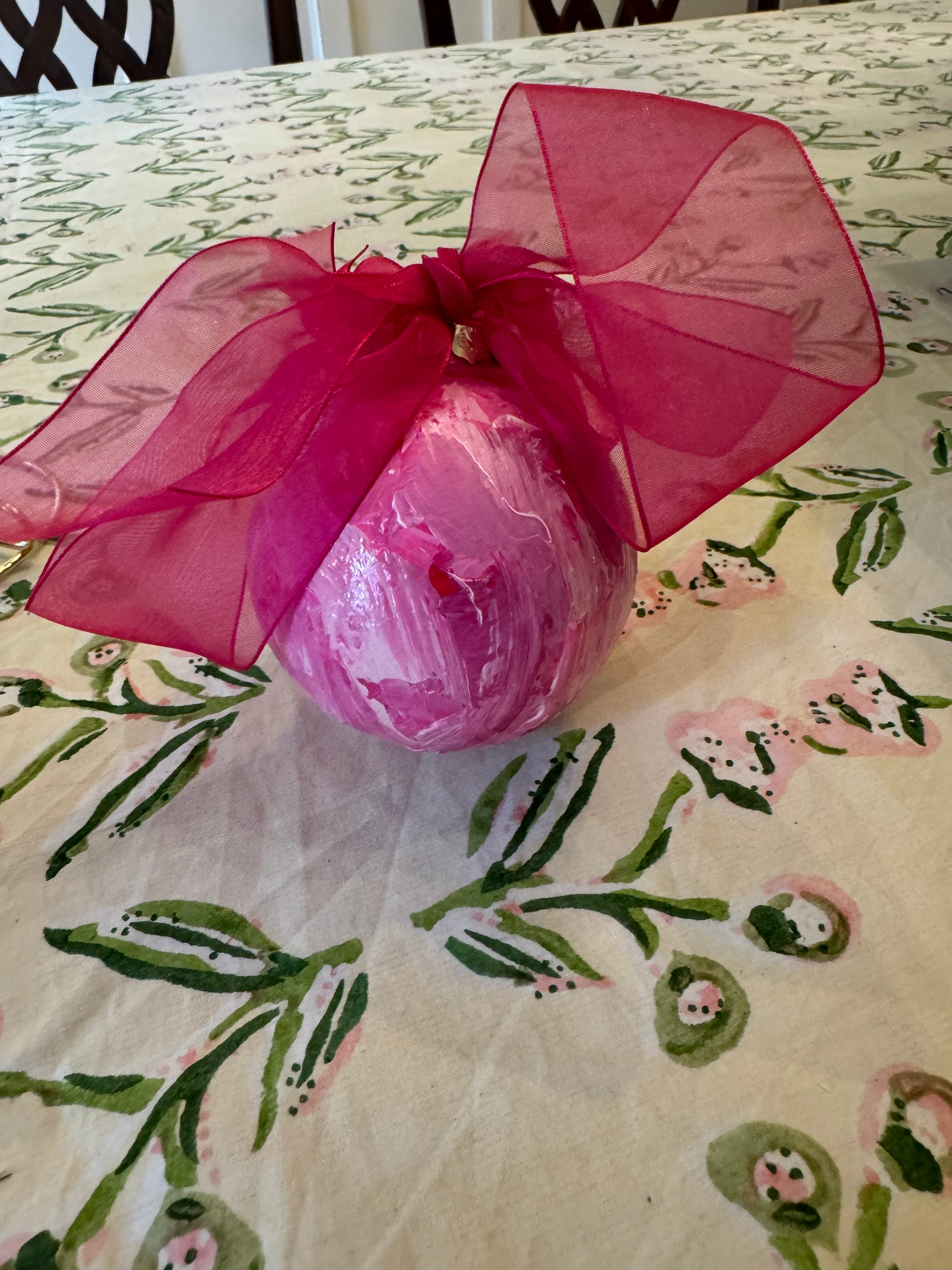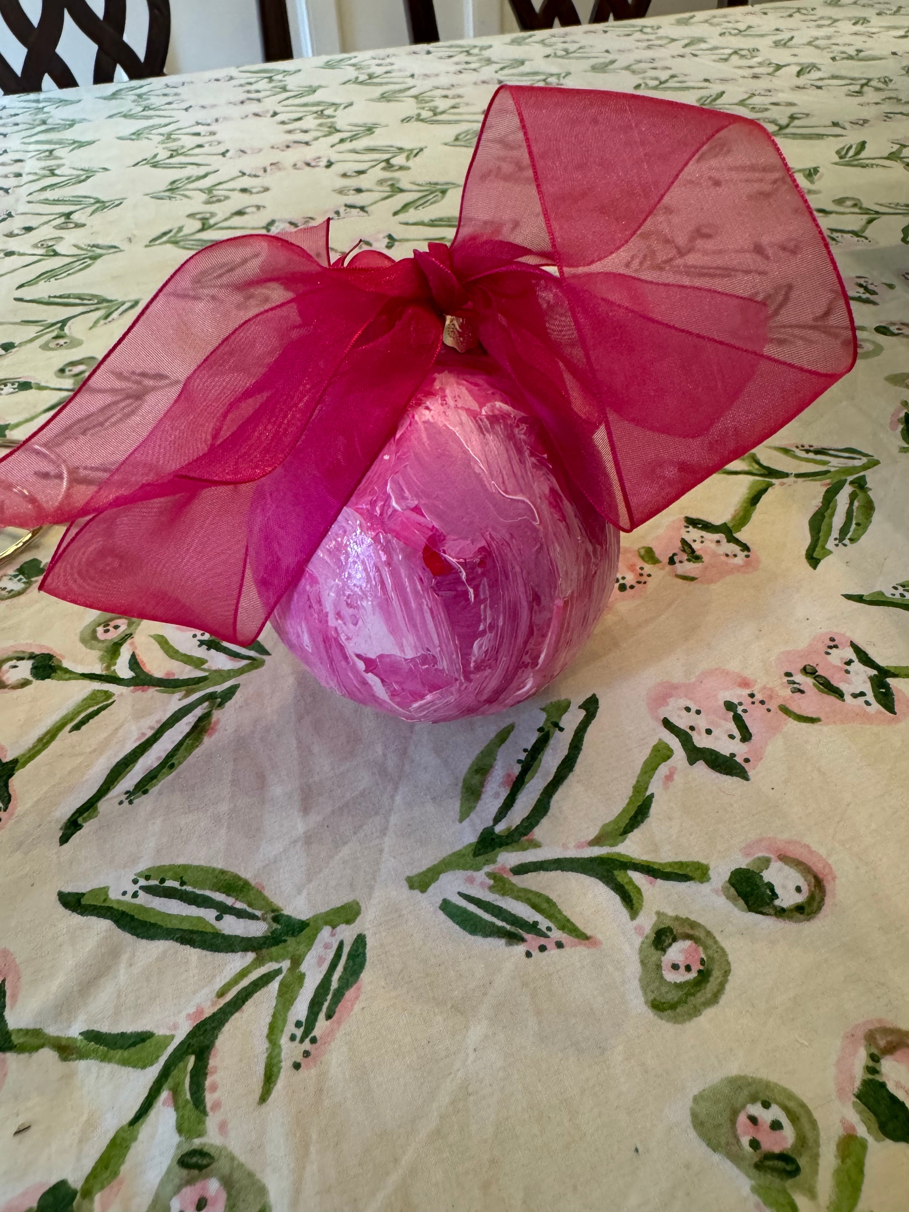 Original, hand-painted, one-of-a-kind ceramic ornament painted by Erin in her signature abstract style with a painterly look and feel. Tied with a coordinating ribbon. Varnished and sealed with a satin finish.