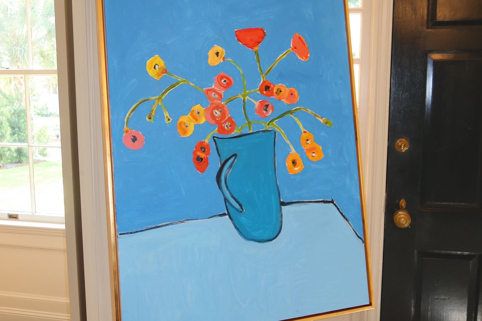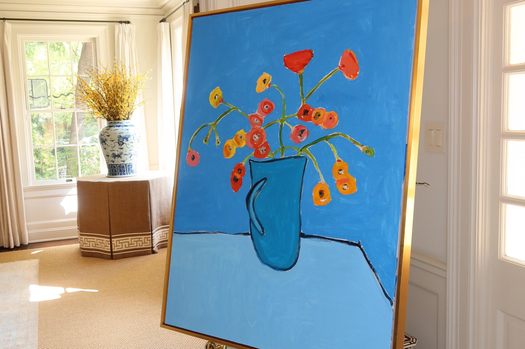 Cerulean Vase with Wild Poppies