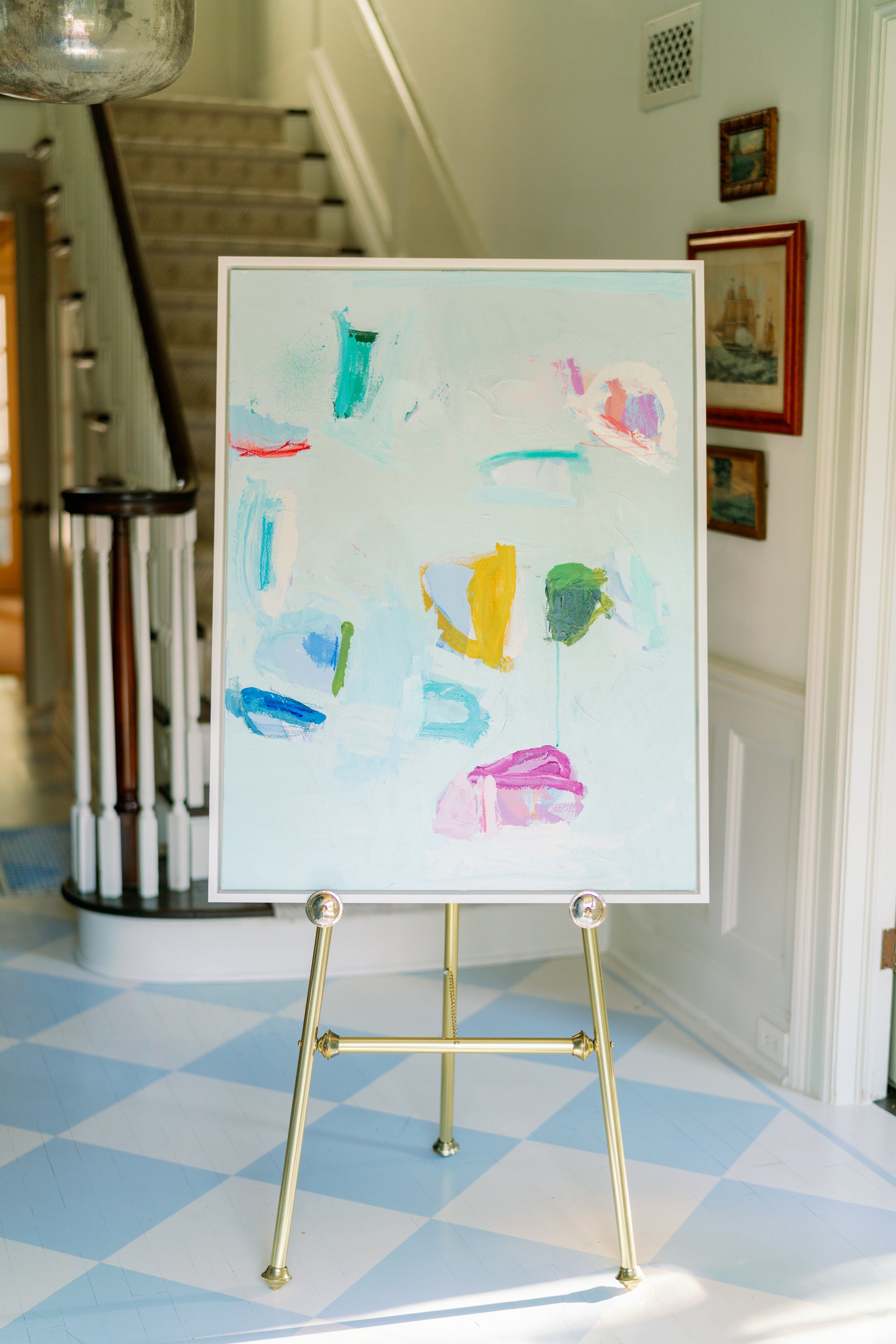This is an original mixed media panting created by Erin Donahue Tice. It's 40x30 inches and framed in a professional, custom gold float frame. It can be hung vertically or horizontally and is wired to hang. The artist will sign the front unless otherwise specified.