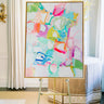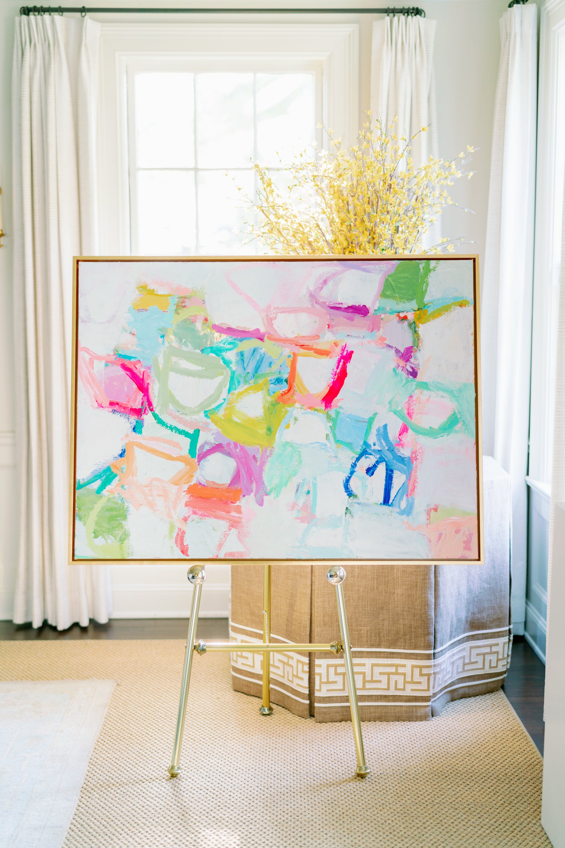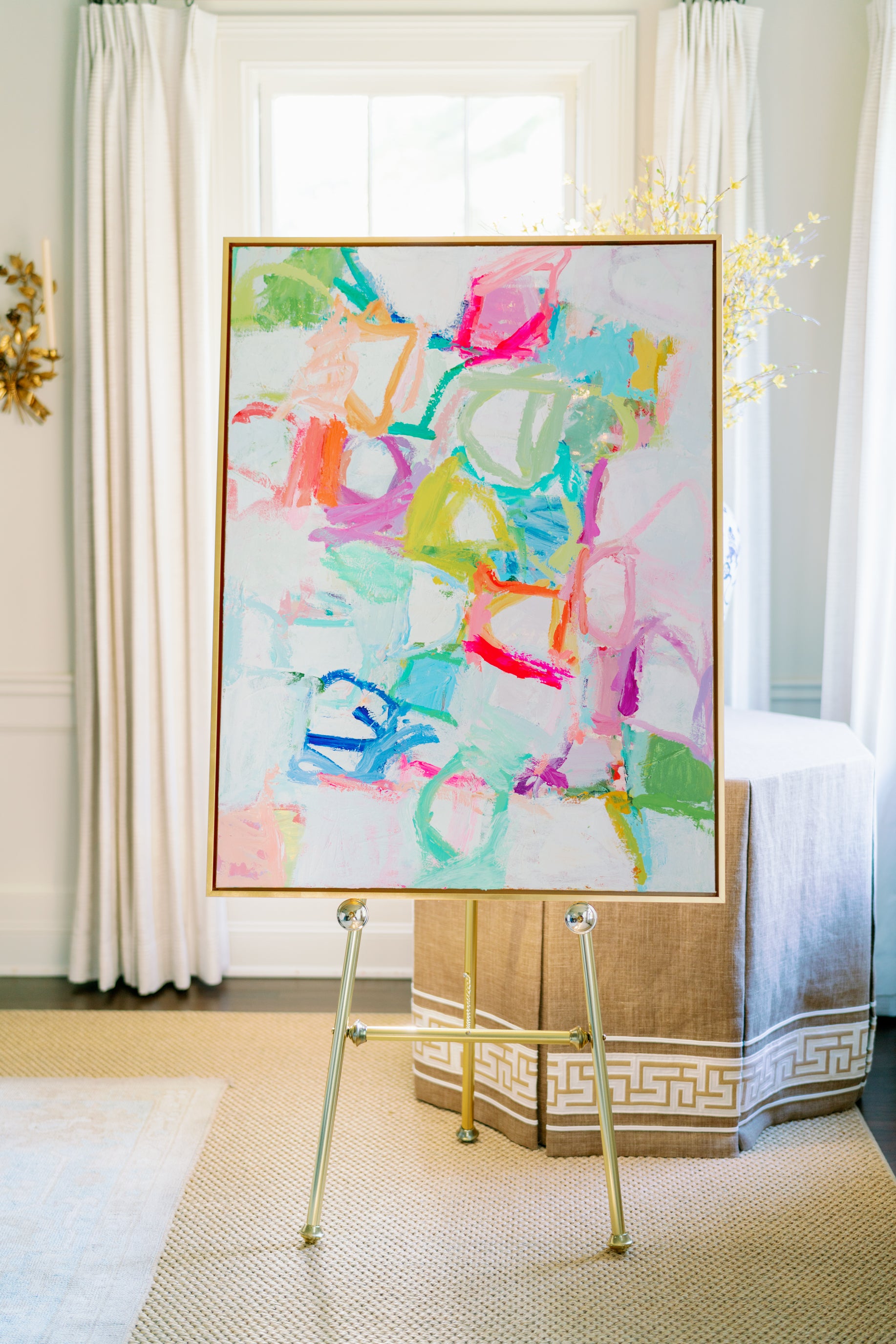 This is an original mixed media panting created by Erin Donahue Tice. It's 48x36 inches and framed in a professional, custom gold float frame. It can be hung vertically or horizontally and is wired to hang. The artist will sign the front unless otherwise specified.