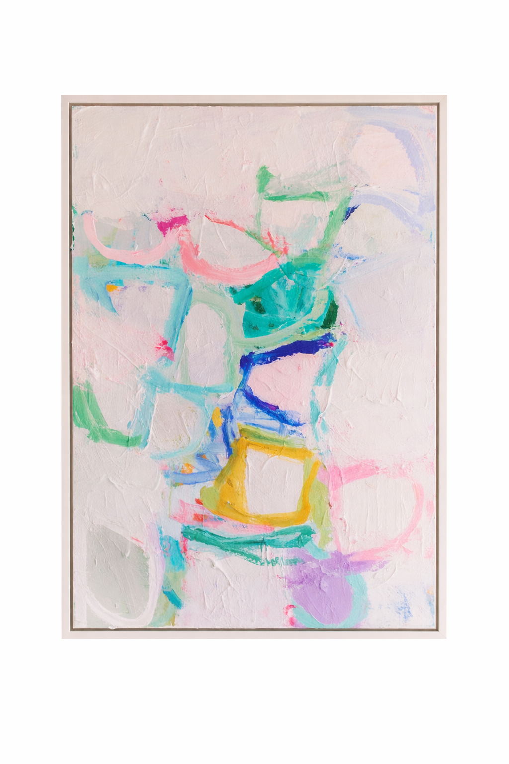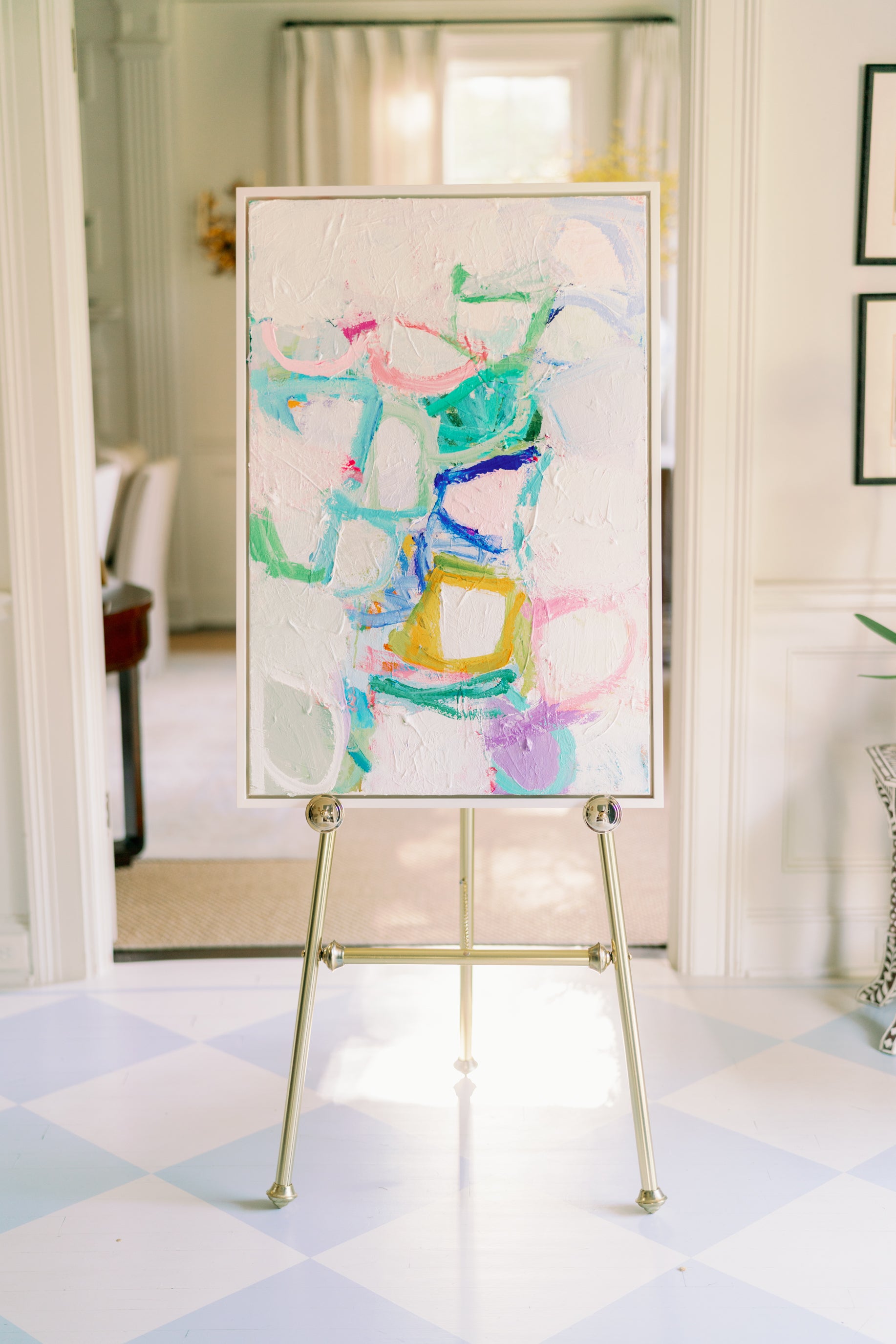 This is an original mixed media panting created by Erin Donahue Tice. It's 36x24 inches and framed in a professional, custom gold float frame. It can be hung vertically or horizontally and is wired to hang. The artist will sign the front unless otherwise specified.