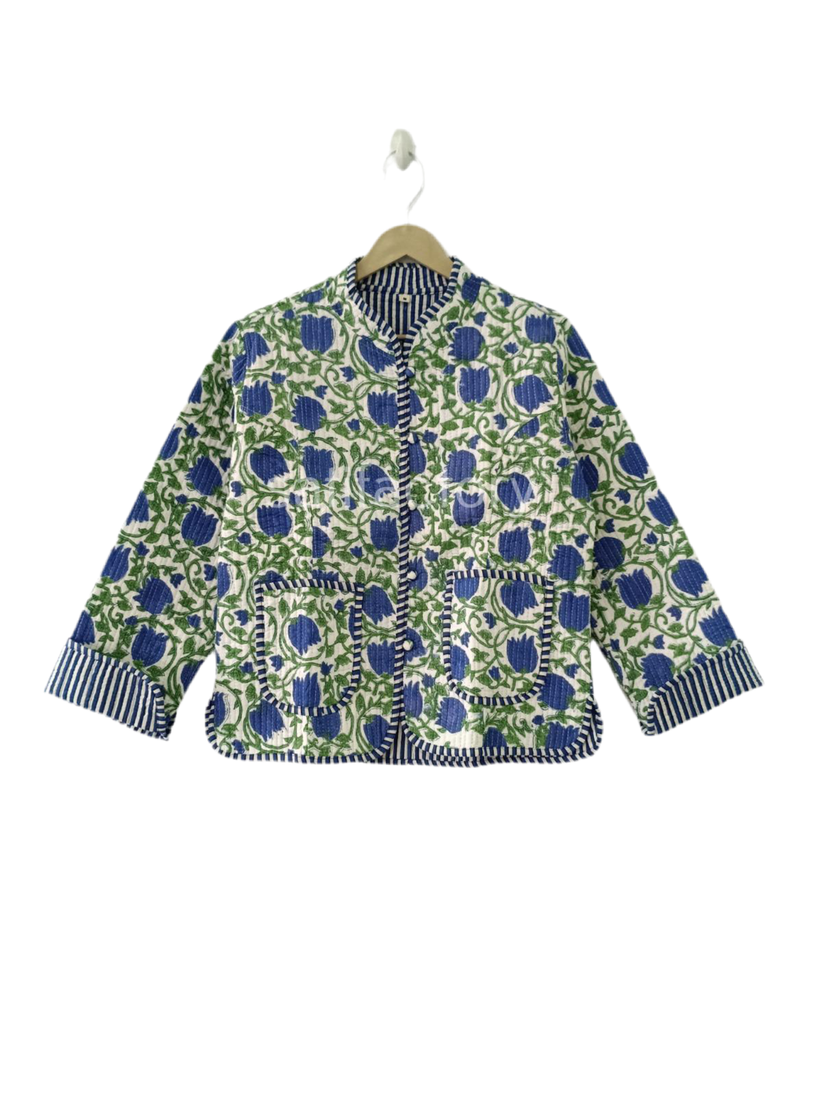 - Because our prints are done by hand, you’ll notice subtle variations — the hallmark of true craftsmanship. Block printing is one of the oldest methods of textile design in the world, and it brings a soulful, artisanal quality to every Charlotte jacket.