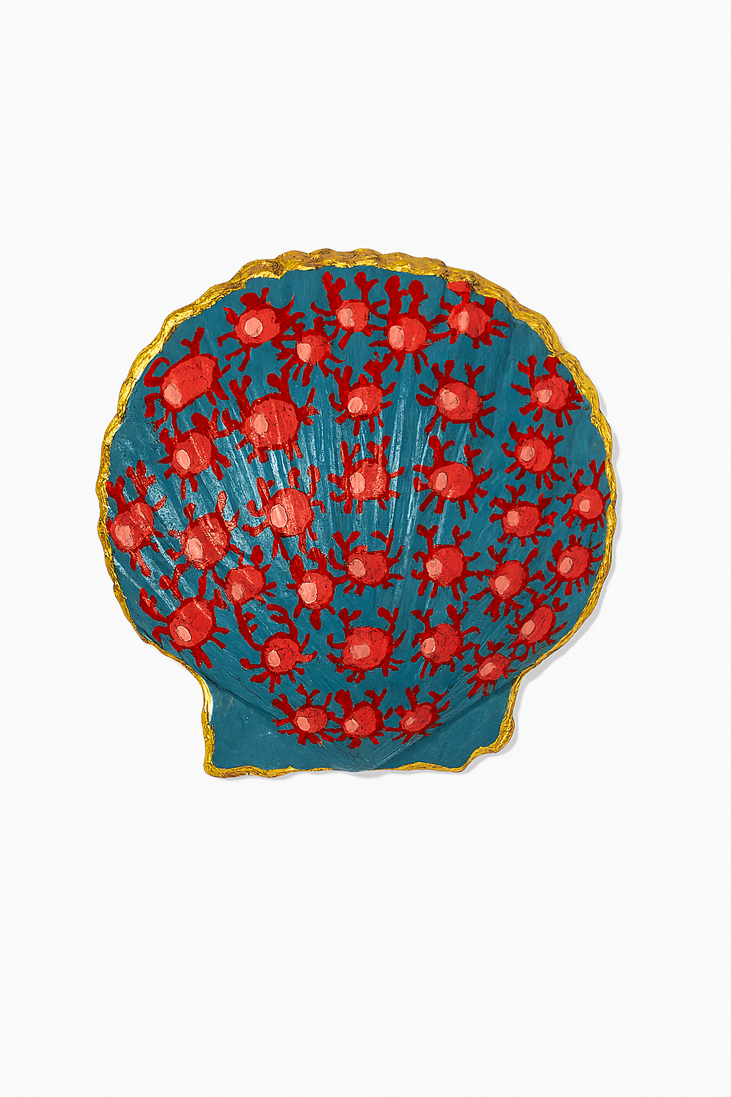 • Details: A beautiful seashell, carefully decoupaged with intricate designs, sealed for durability, and finished with a hand-painted gold leaf trim.