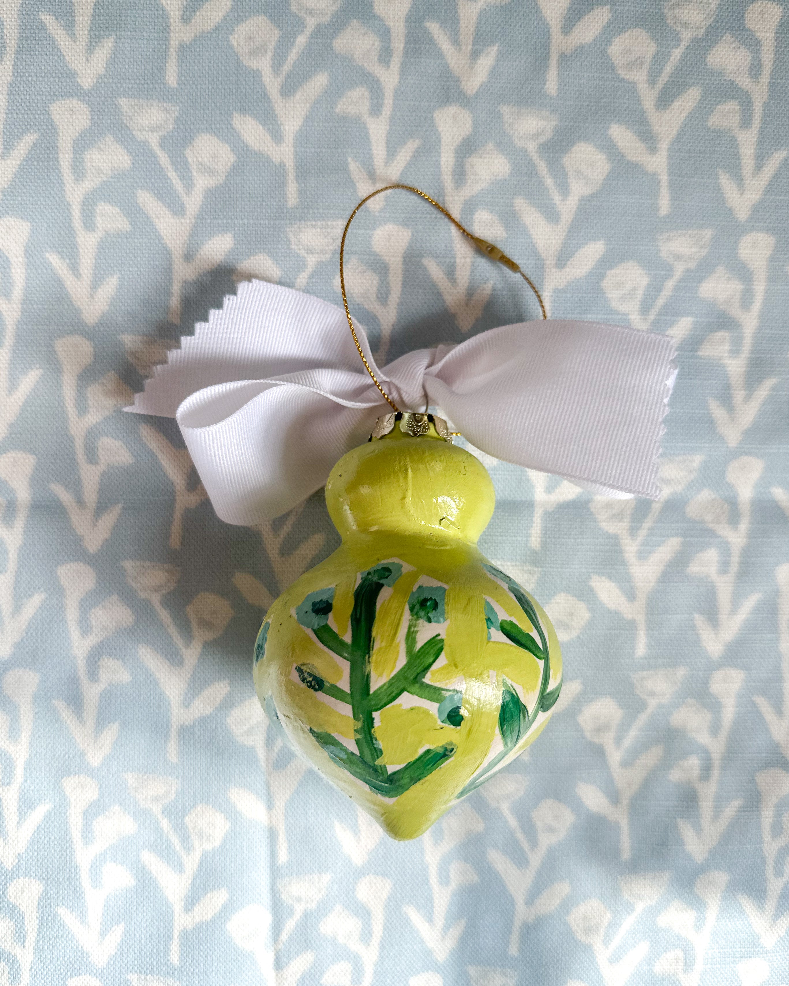 Original, hand-painted, one-of-a-kind ceramic ornament painted by Erin in her signature abstract style with a painterly look and feel. Tied with a coordinating ribbon. Varnished and sealed with a satin finish.