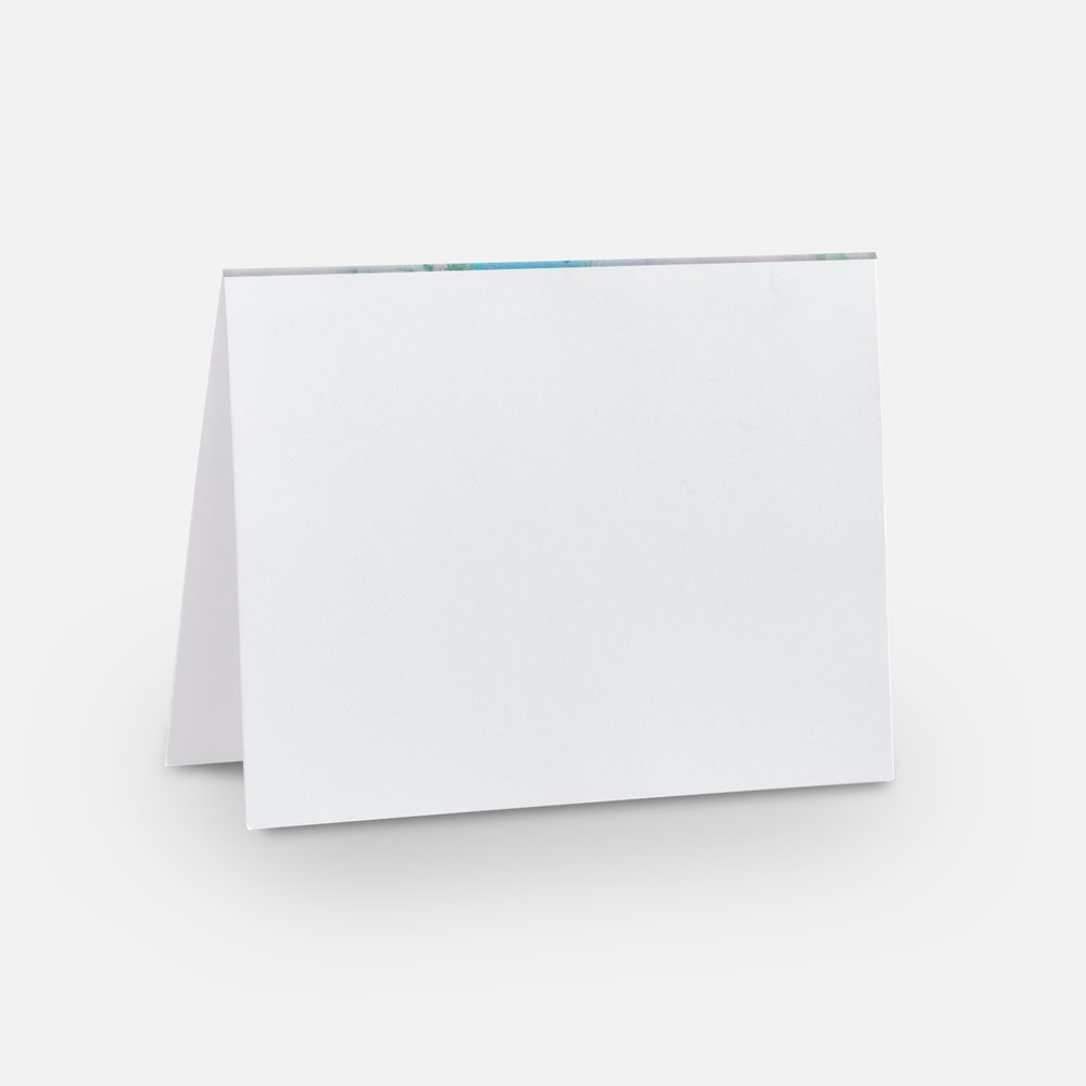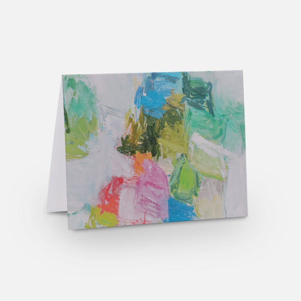 The harmonious blend of greens, blues, and pinks creates a serene, yet lively design, making each card feel like a piece of art. Printed on premium, smooth cardstock, these notecards bring both color and sophistication to your words.