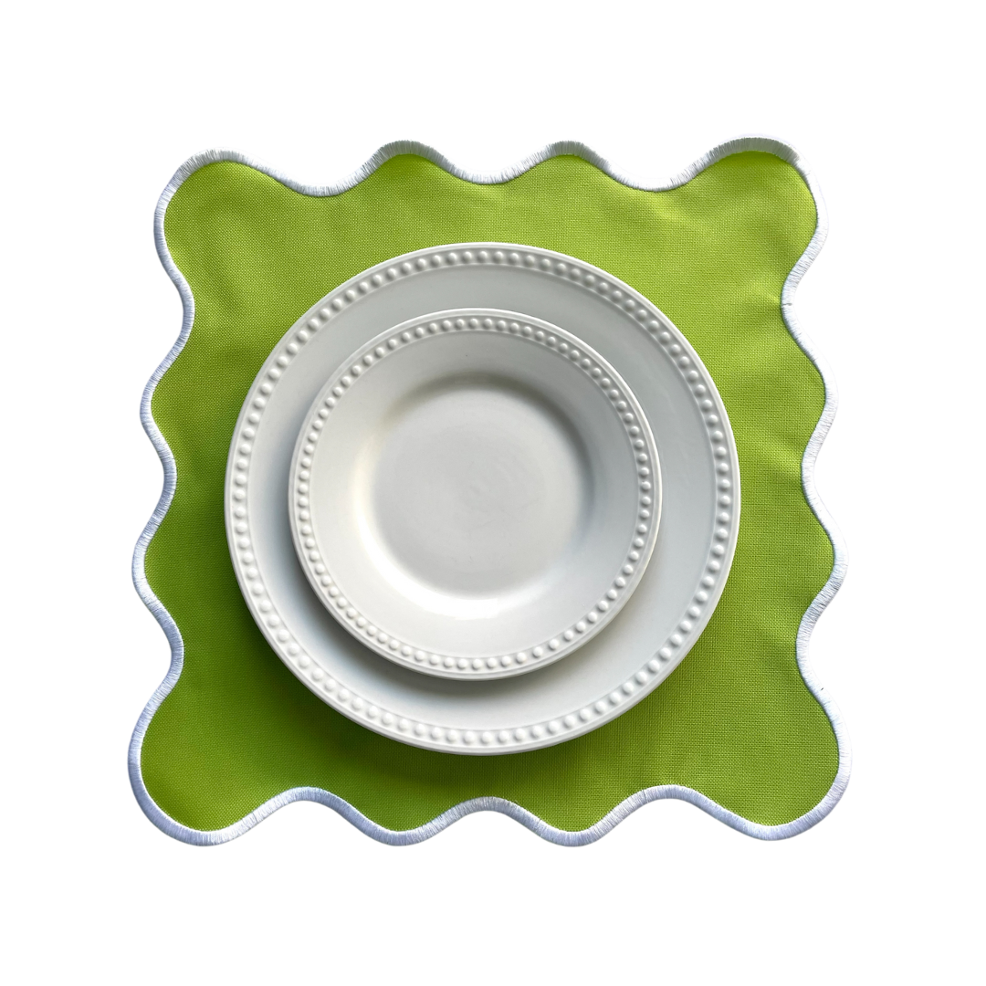 Set of 4 Green With White Trim Square Scalloped Placemat