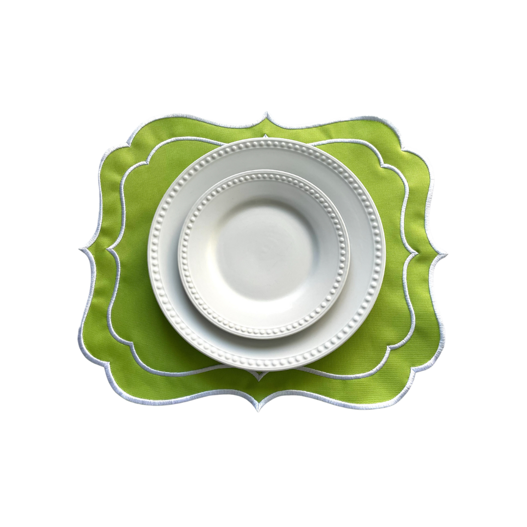 Set of 4 Lime Green Rectangular Scalloped Placemat