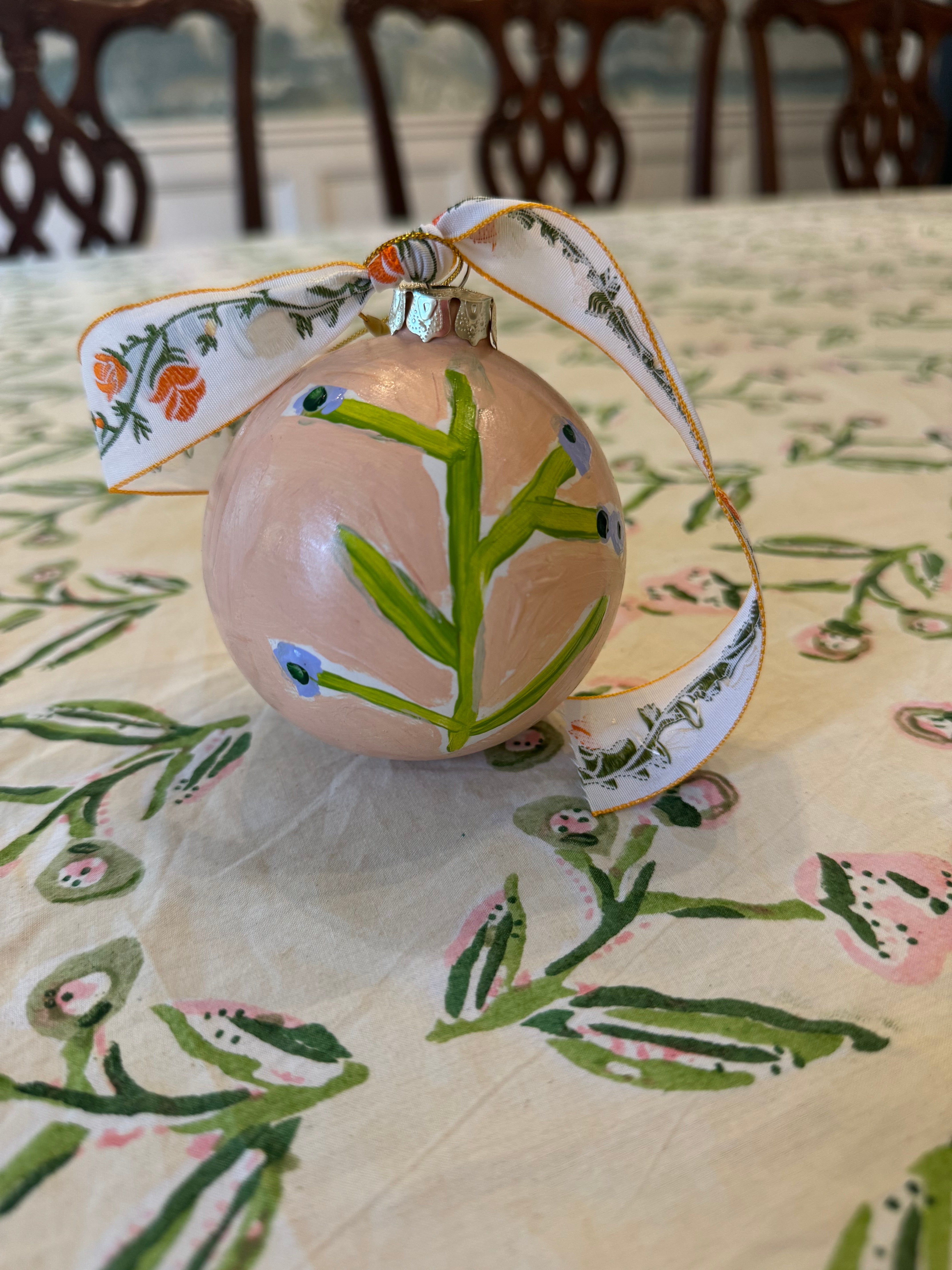 Original, hand-painted, one-of-a-kind ceramic ornament painted by Erin in her signature abstract style with a painterly look and feel. Tied with a coordinating ribbon. Varnished and sealed with a satin finish.