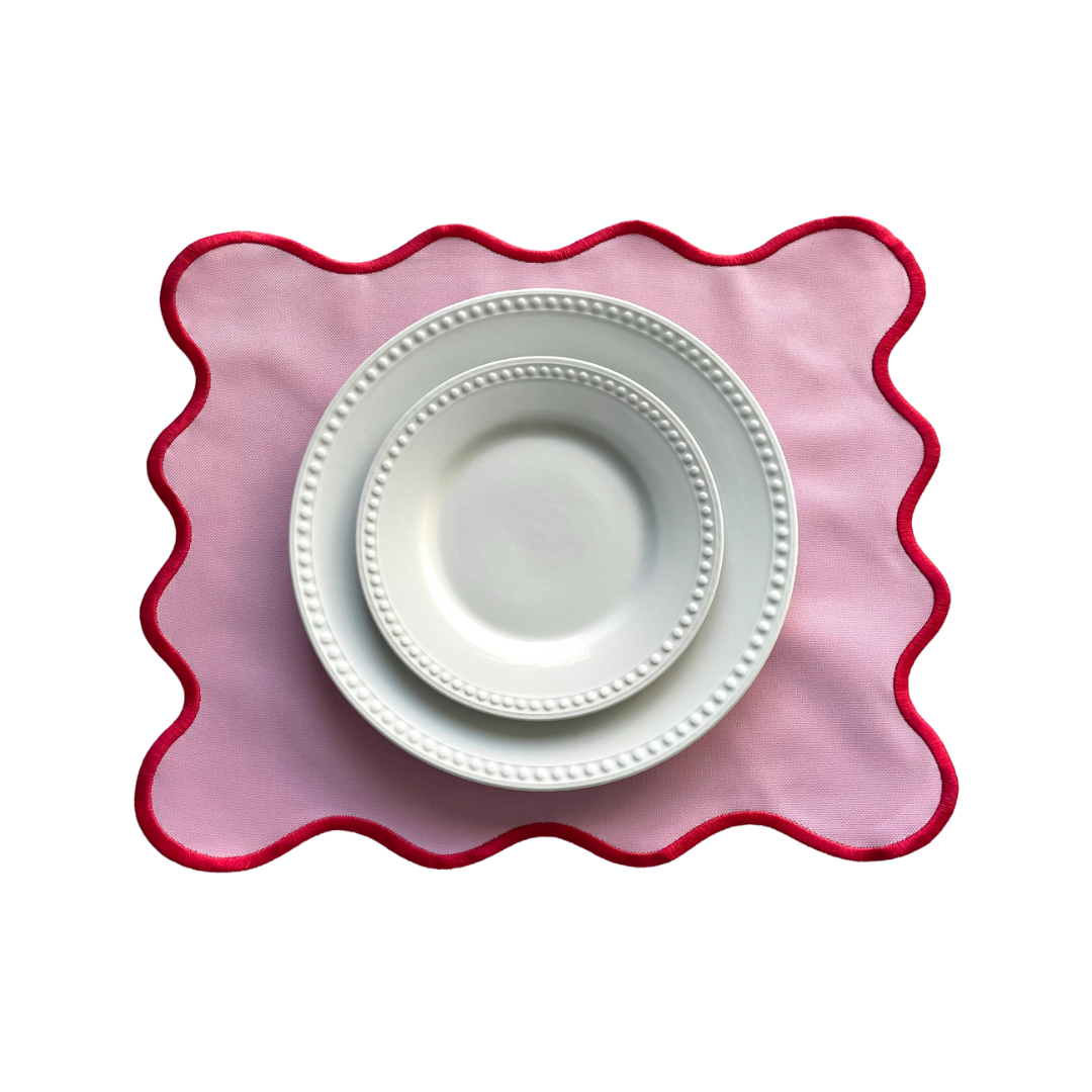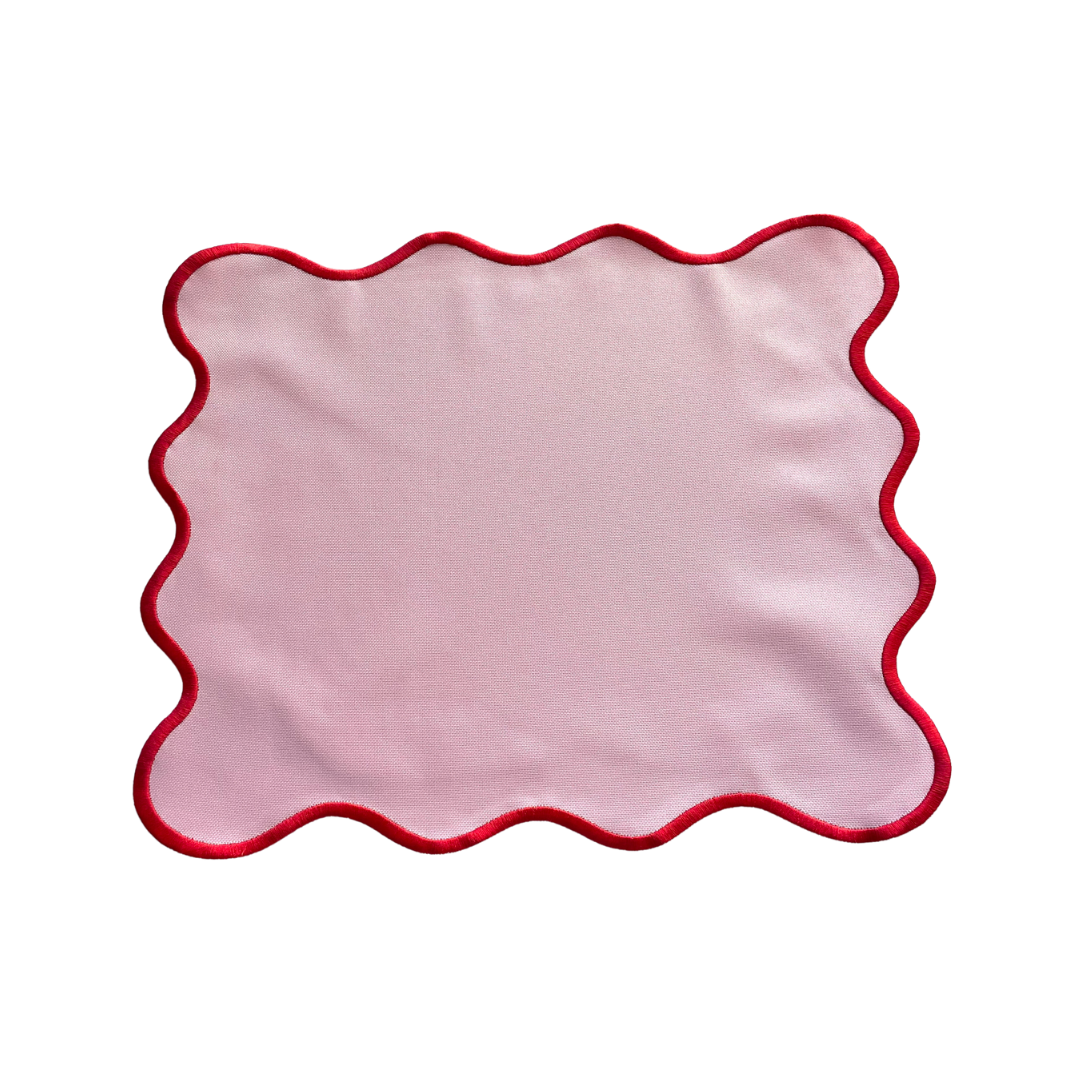 Set of 4 Pink Rectangular Scalloped Placemat