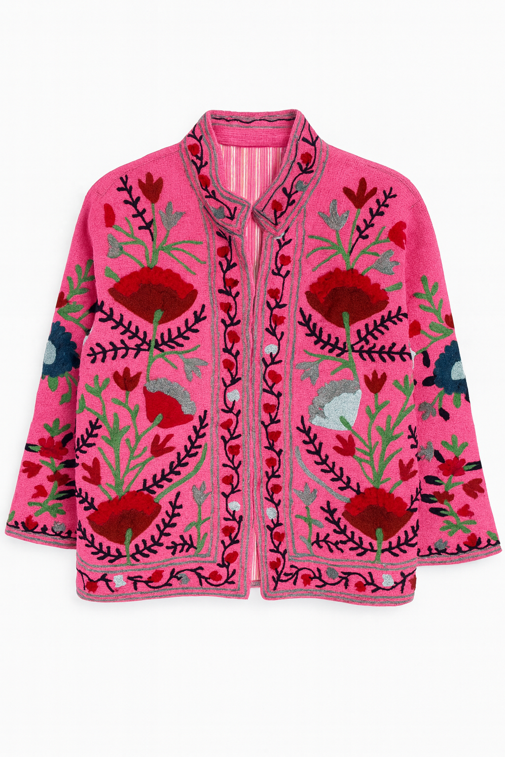 The Isabel is a wearable piece of art — intricately embroidered and beautifully made by hand. Crafted by skilled artisans in India, this jacket features rich embroidery inspired by heritage textile traditions and is fully lined in a soft, striped cotton for a polished finish.