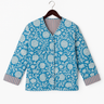 Meet The Charlotte — the spirited sister to our signature quilted jacket. This jacket is features a bright blue background with white floral accents.