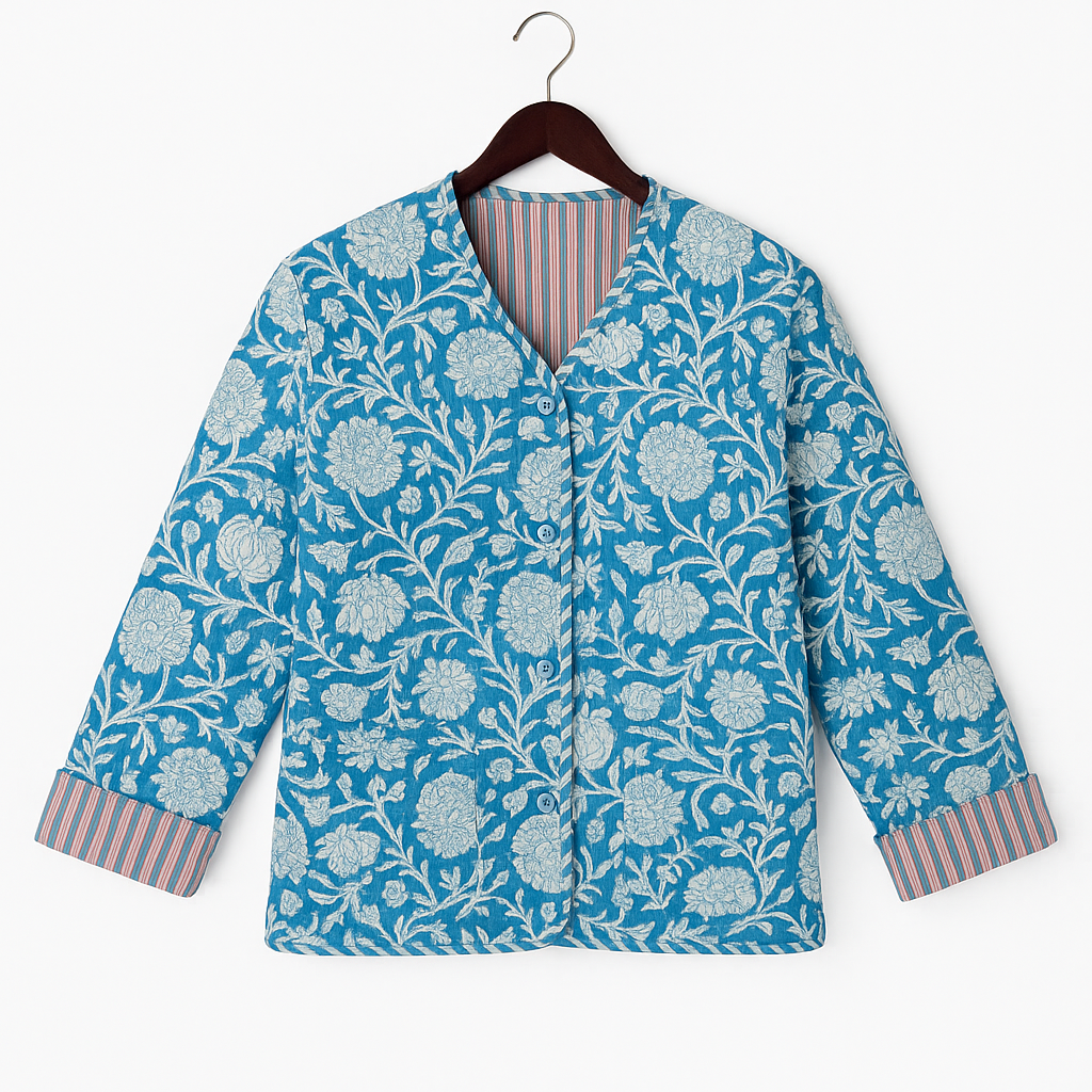 - Because our prints are done by hand, you’ll notice subtle variations — the hallmark of true craftsmanship. Block printing is one of the oldest methods of textile design in the world, and it brings a soulful, artisanal quality to every Charlotte jacket.