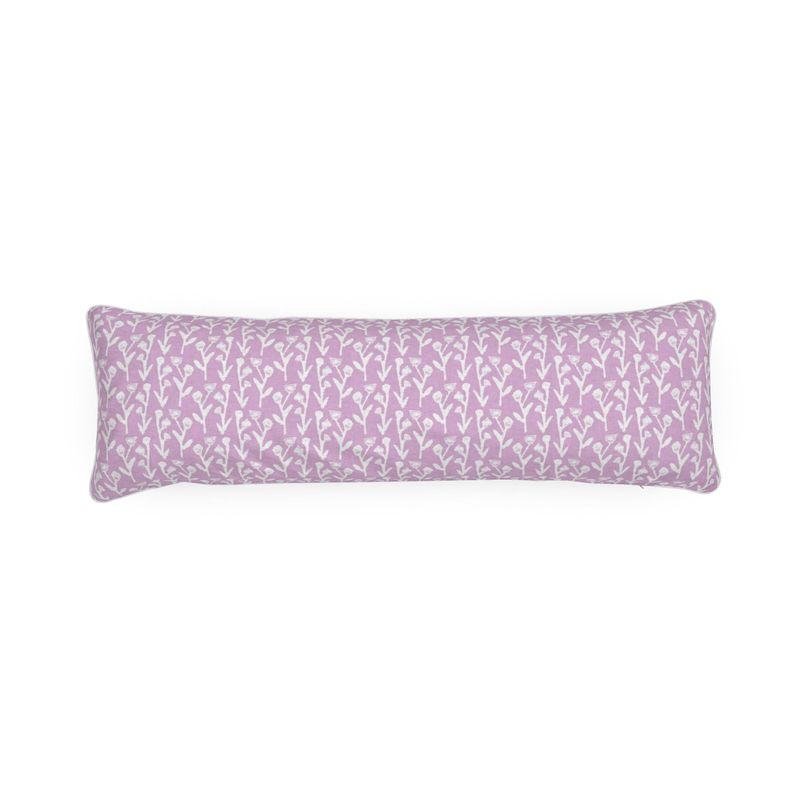 - The Ivy Manor bolster in lilac and white is a repeat pattern of one of my abstract paintings and made into a repeat pattern for this fun throw pillow design.