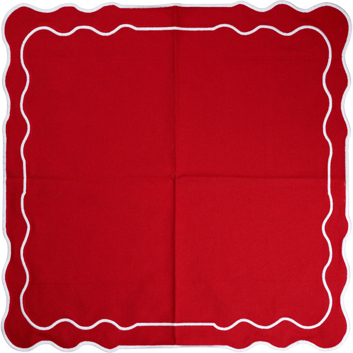 Our red and white place mats are both festive and fun! These place mats will carry you from holiday entertaining to summer picnics. Finished with an embroidered scalloped edge. 100% cotton.