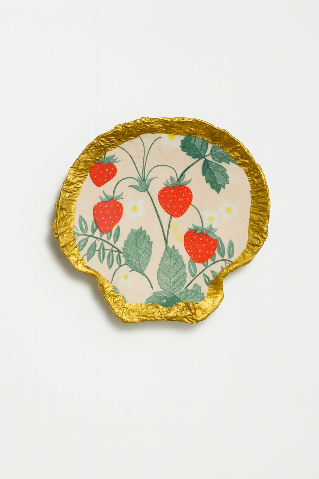 • Details: A beautiful seashell, carefully decoupaged with intricate designs, sealed for durability, and finished with a hand-painted gold leaf trim.