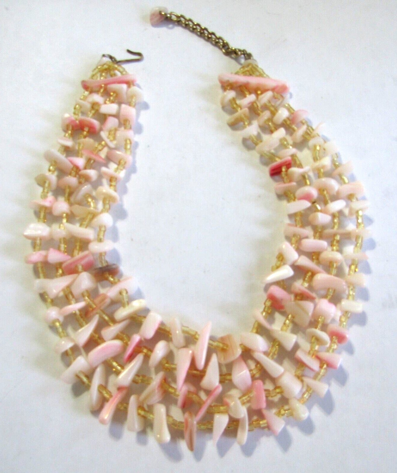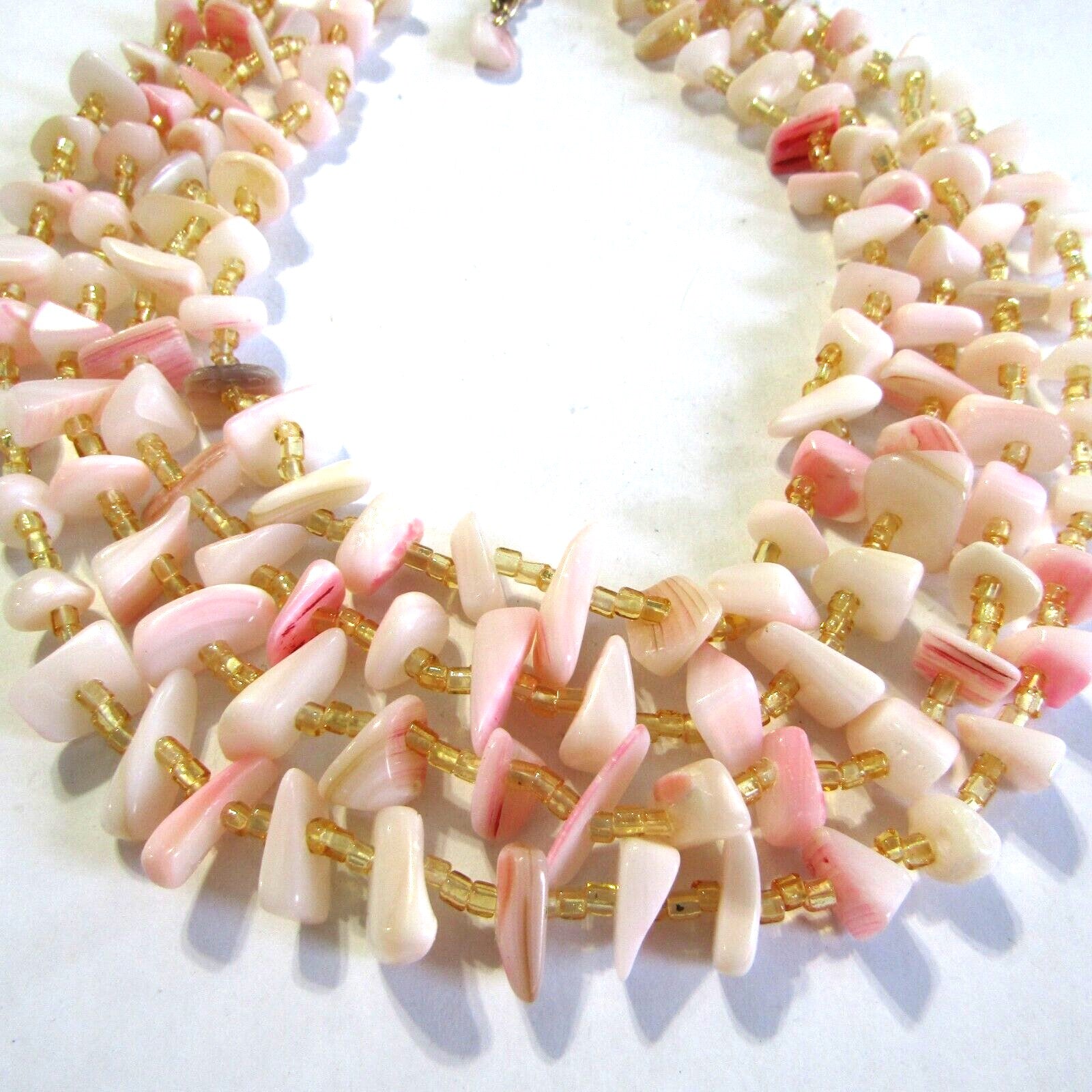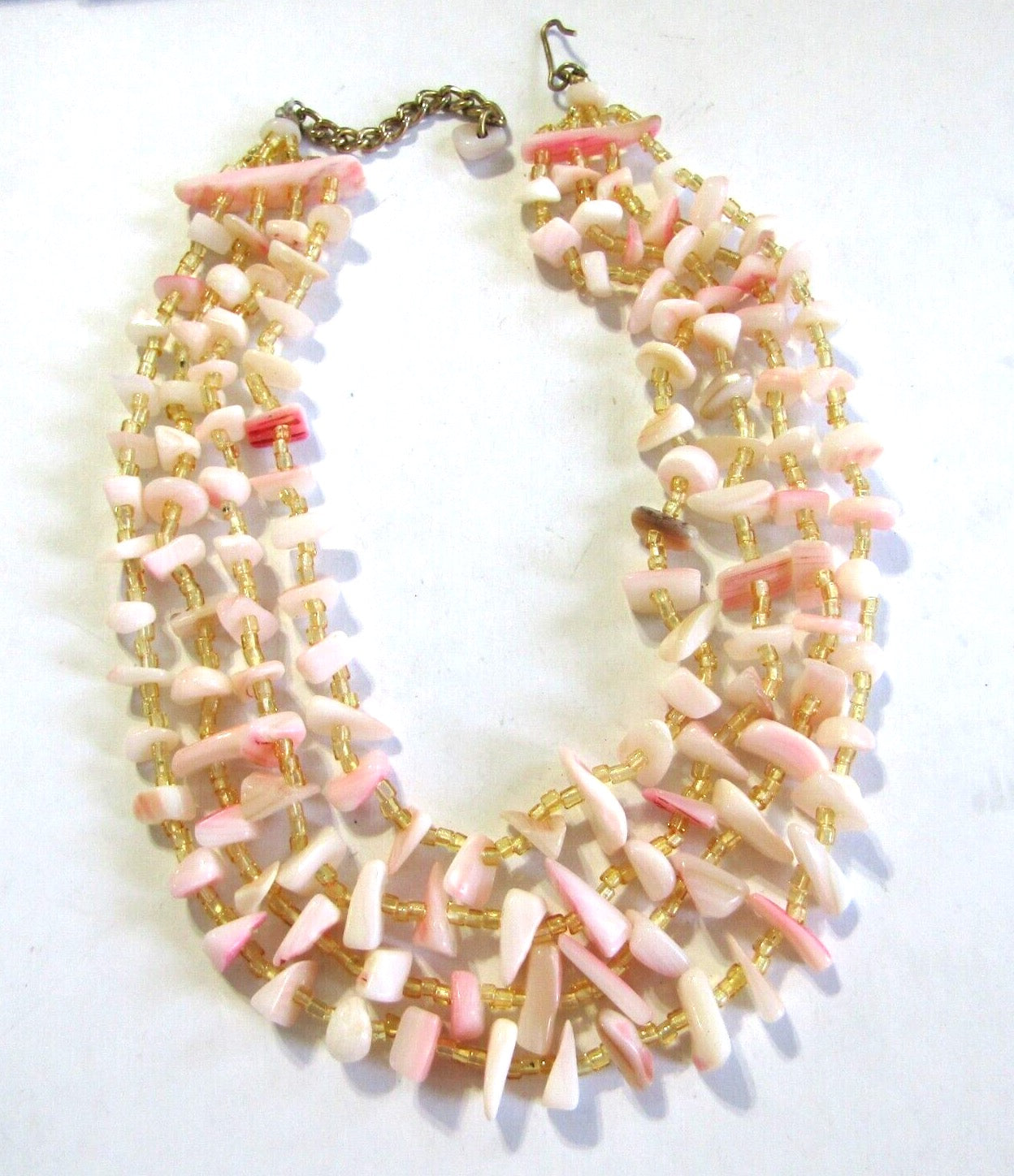 Vintage Shell MultiStrand Necklace 25 Inches Long 4.5 Wide