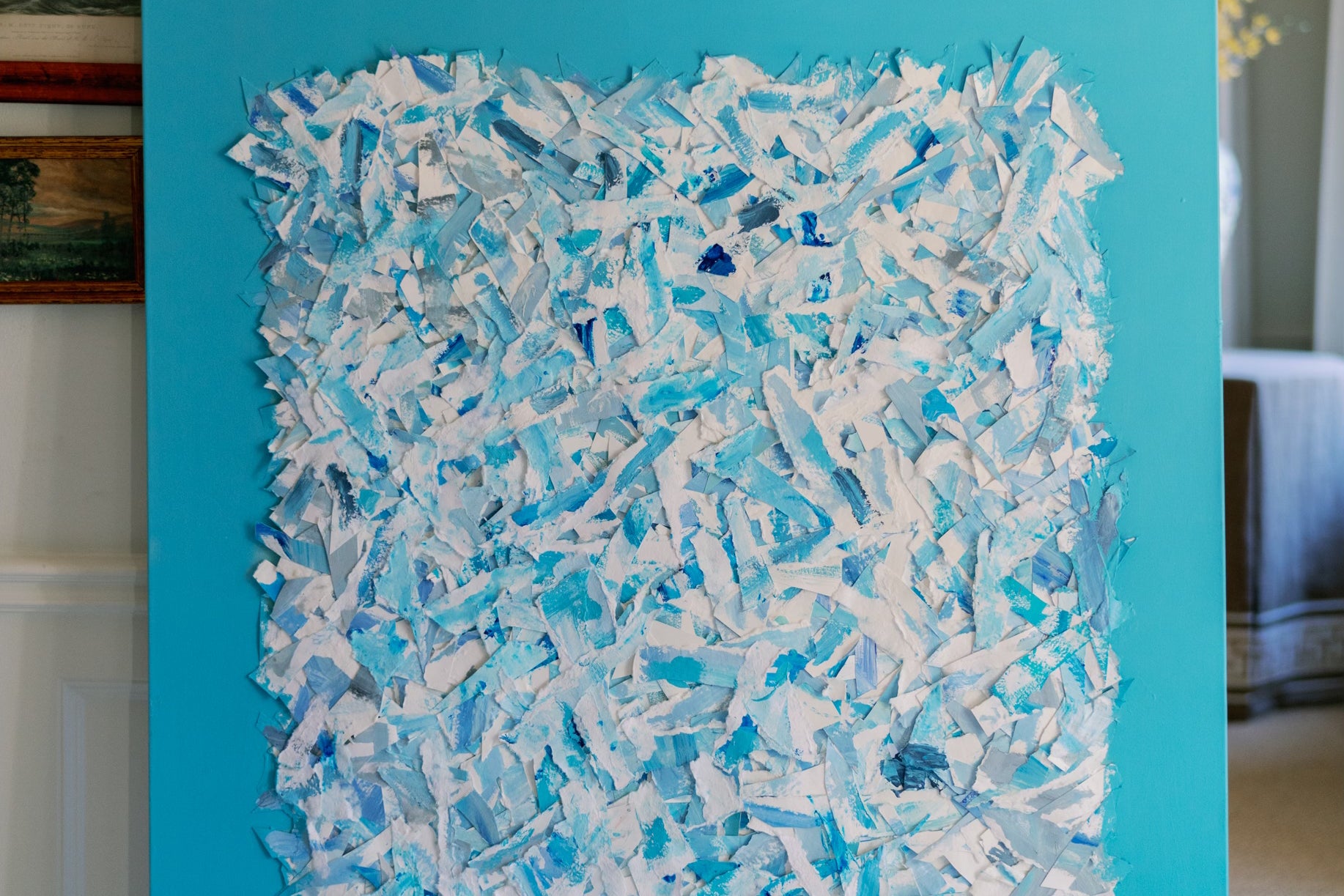 These large-scale collages are comprised of mixed media paper paintings which have been cut and ripped up, and then layered and collaged onto gallery-wrapped canvases. Each piece is made up of hundreds of other pieces that came before. No two pieces will ever be the same! Framing is available upon request.