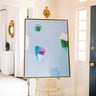 48x36 mixed media on linen canvas. Custom framed in gold float frame. Can be hung vertically or horizontally.