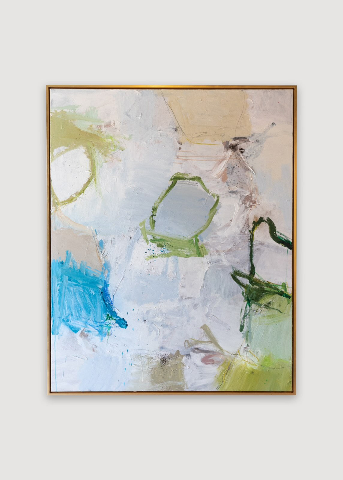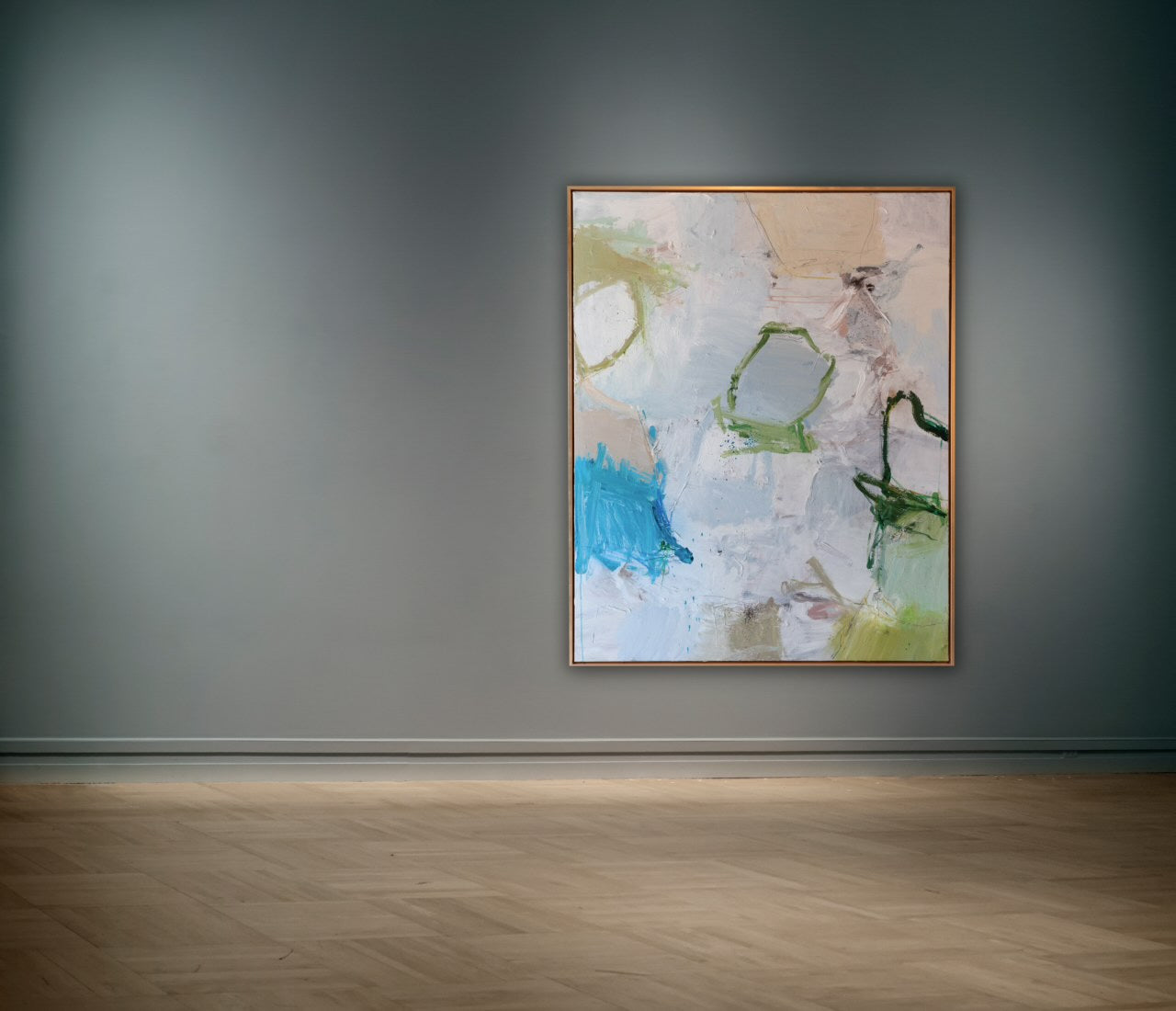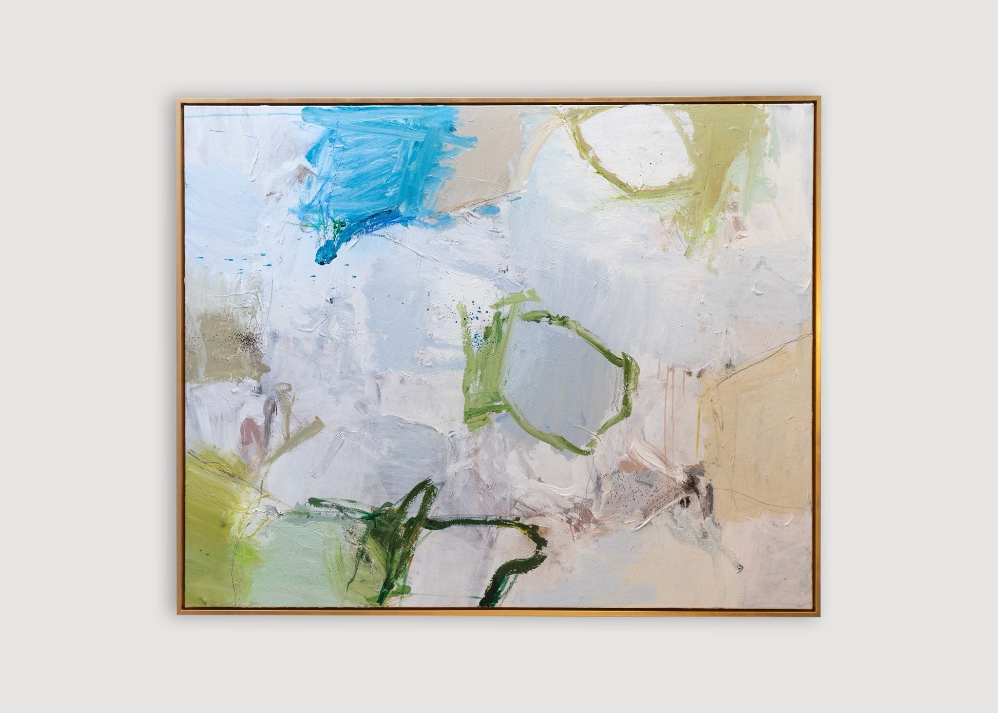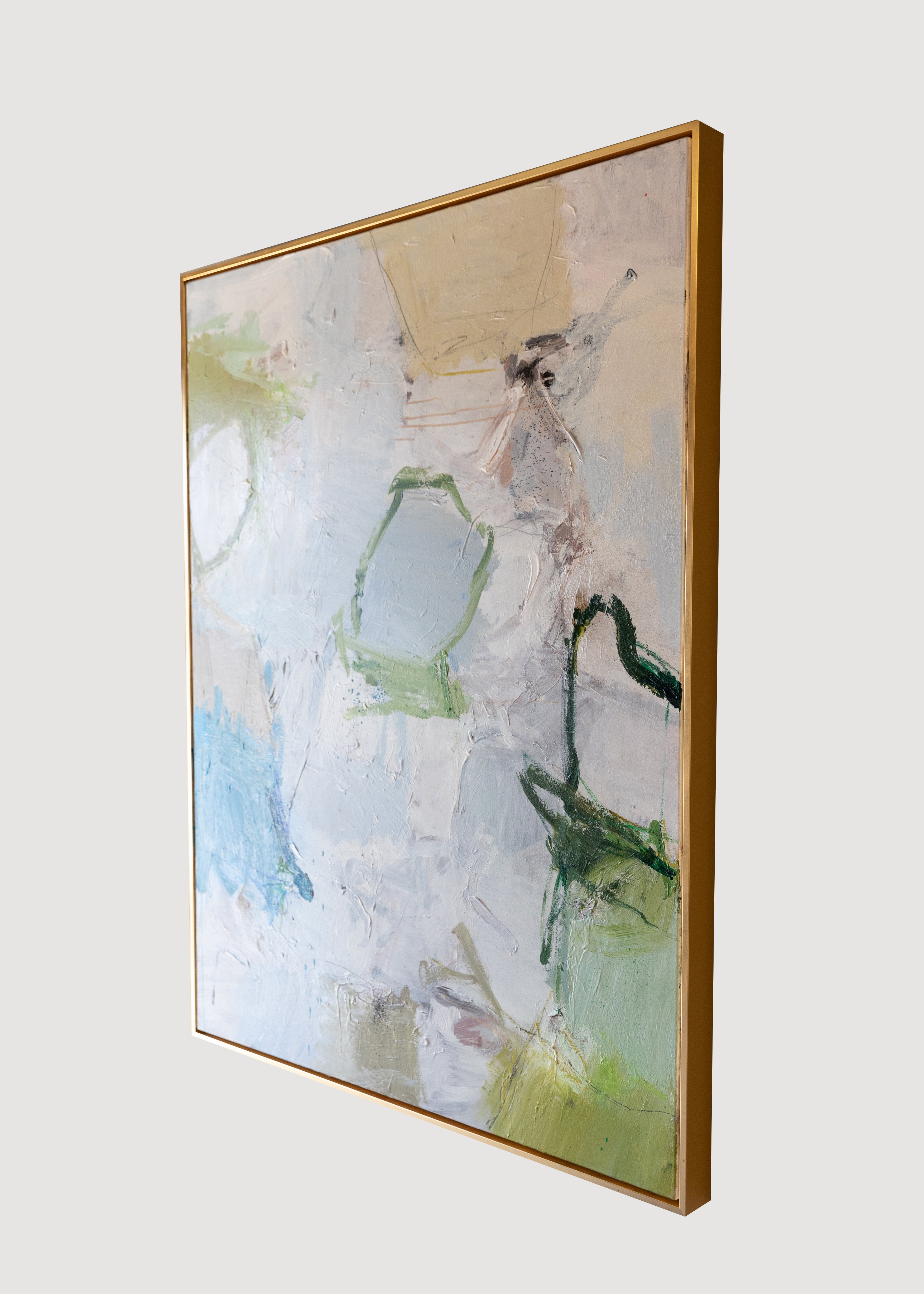 48x60 original mixed media painting. Acrylic, gouache, oil pastel and charcoal. Framed in custom gold float frame. Can be hung vertically or horizontally. Signed on back by the artist unless a signature on the front is requested.