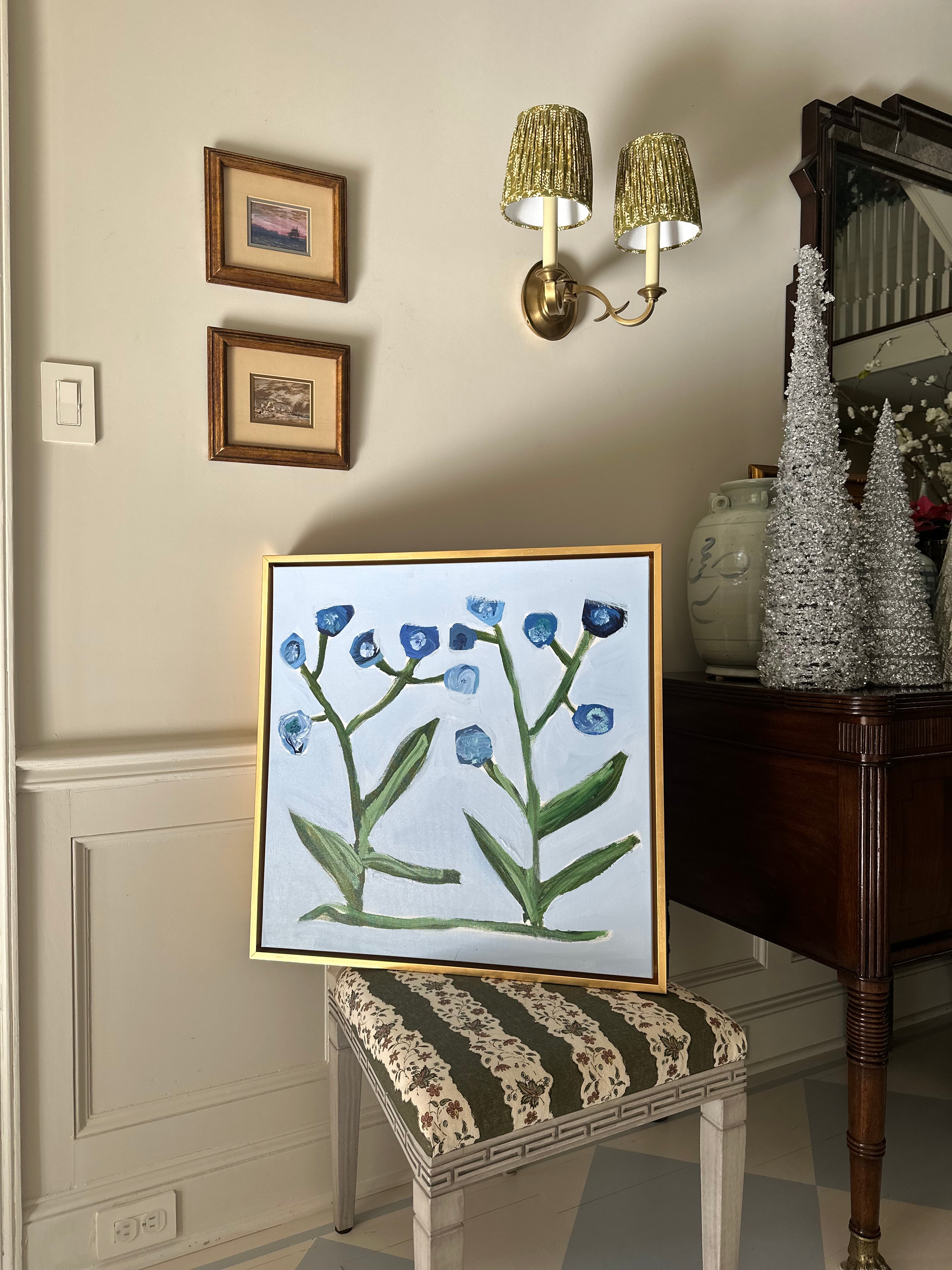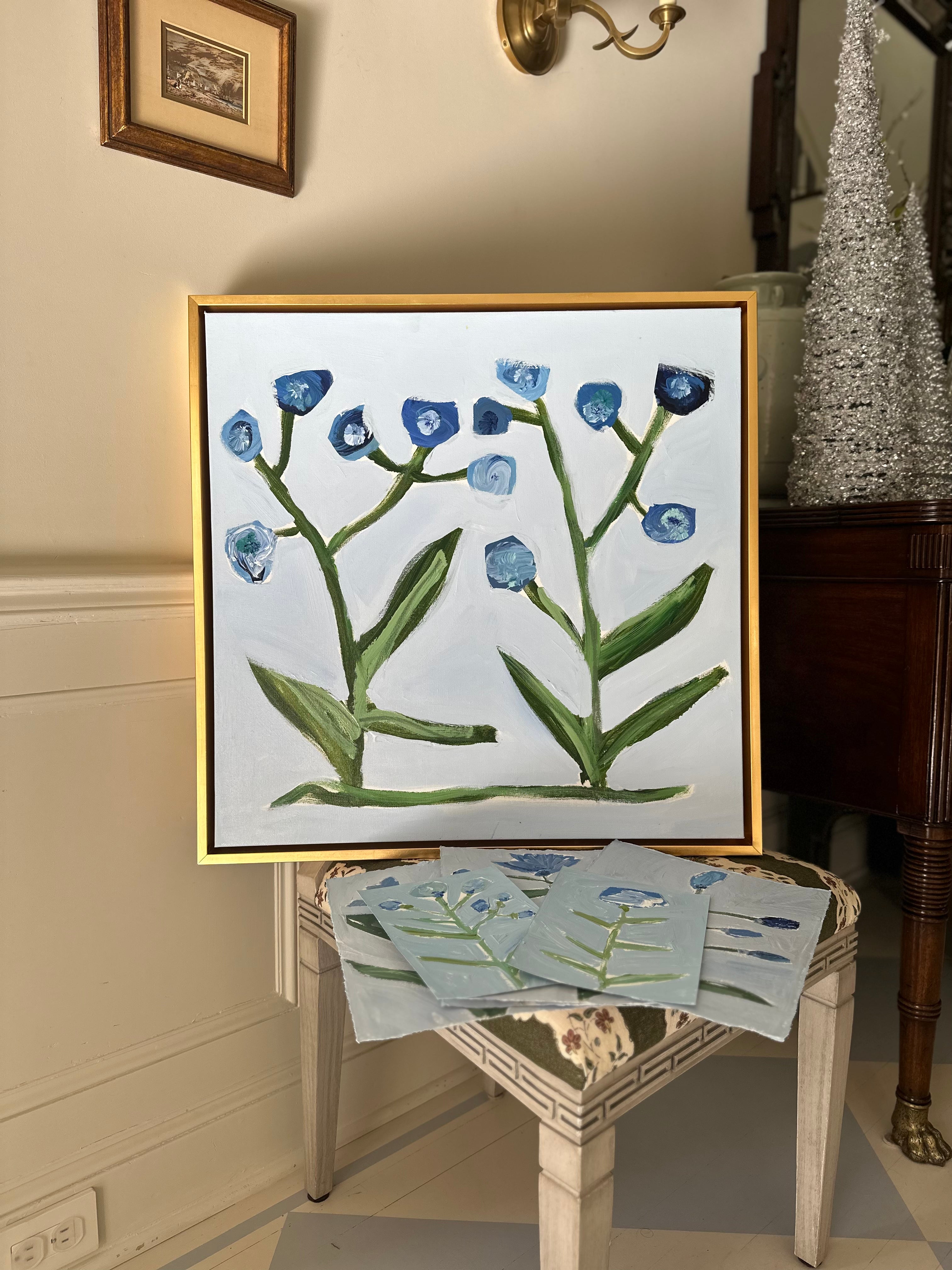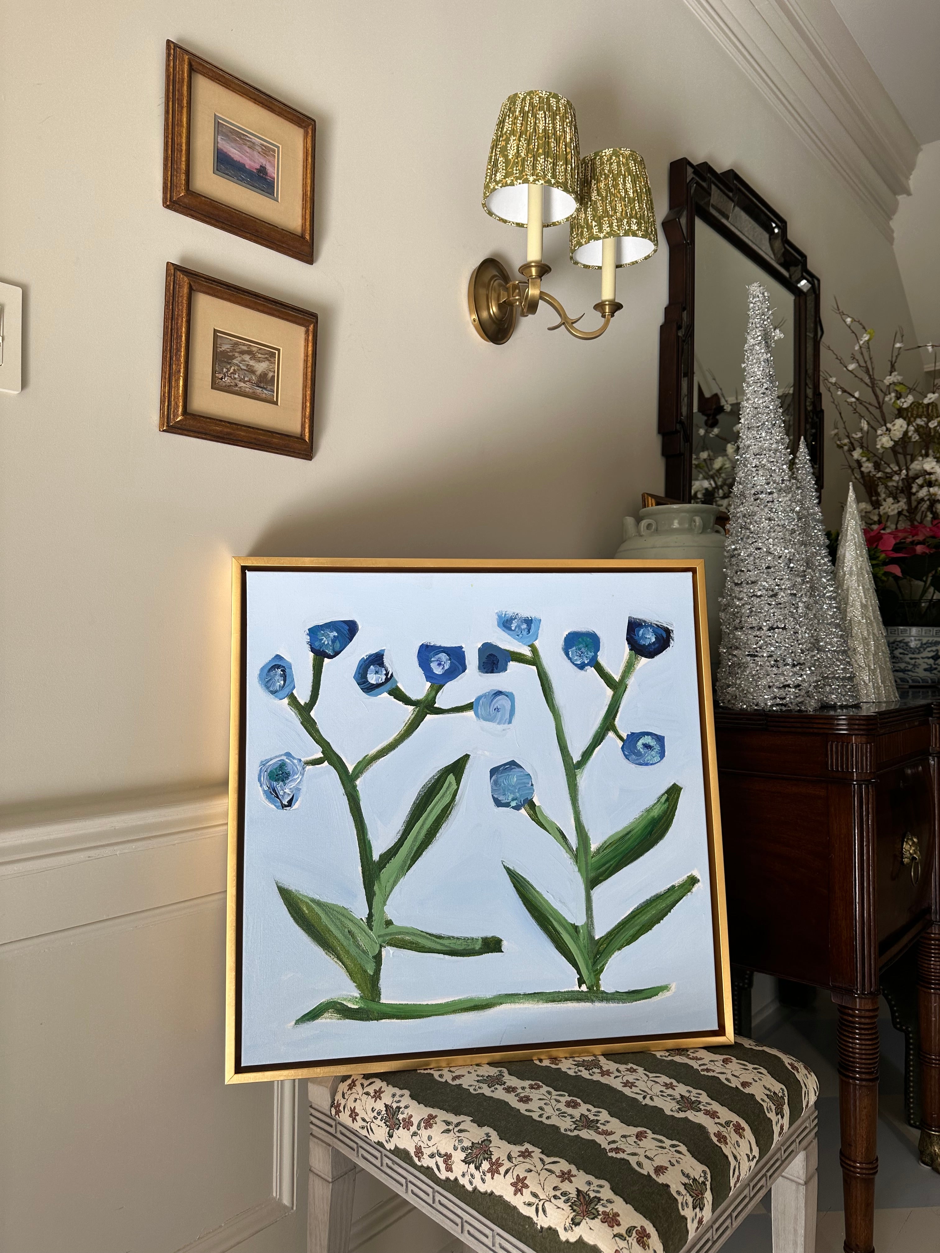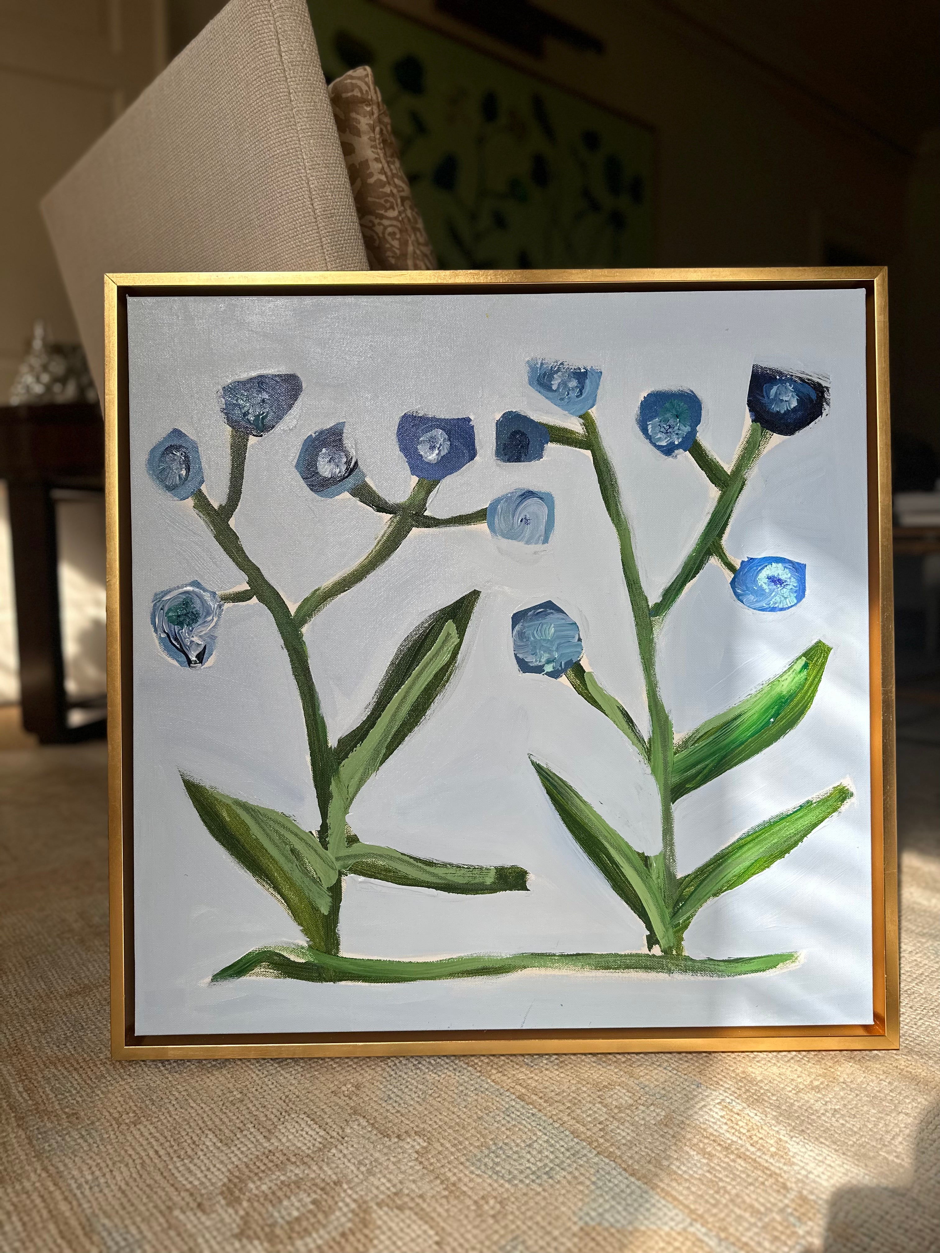 Original mixed media botanical painting on canvas. This piece is framed in a custom gold float frame. 24x24 inches. Signed on the back.