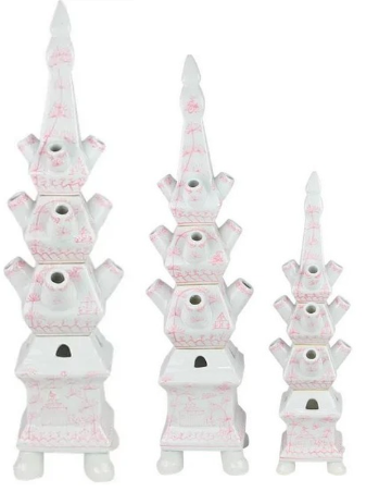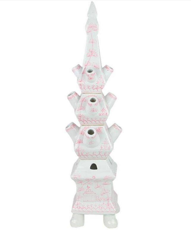 Capture the essence of timeless elegance with our Pale Pink Village Scene Tulipiere, available in three sizes to suit any space. Each piece is a masterpiece of craftsmanship, adorned with delicate pink and white hand-painted village scenes that wrap around the entire body of the tulipiere. Perfect as a standalone statement piece or paired with its companions, this tulipiere is composed of four separate pieces.