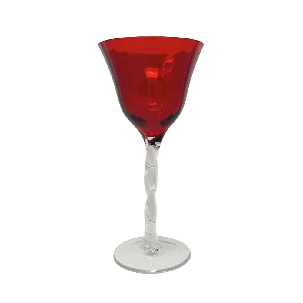 This glass is a remake of an Abigails original. Our Adriana collection features 7 colored wine glasses with a very elegant stem. Hand washing recommended.