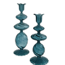 Blue Swirl Glass Candlestick, Medium (Set of 2)
