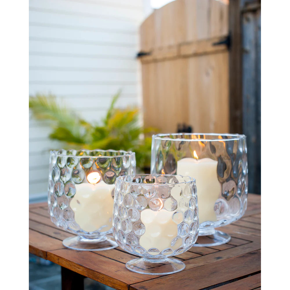 The magic of candlelight reflected from these nice hurricanes is special. Also makes an interesting flower vase.