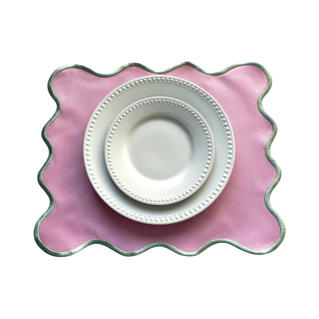 Set of 4 Pink and Green Trim Rectangular Scalloped Placemat