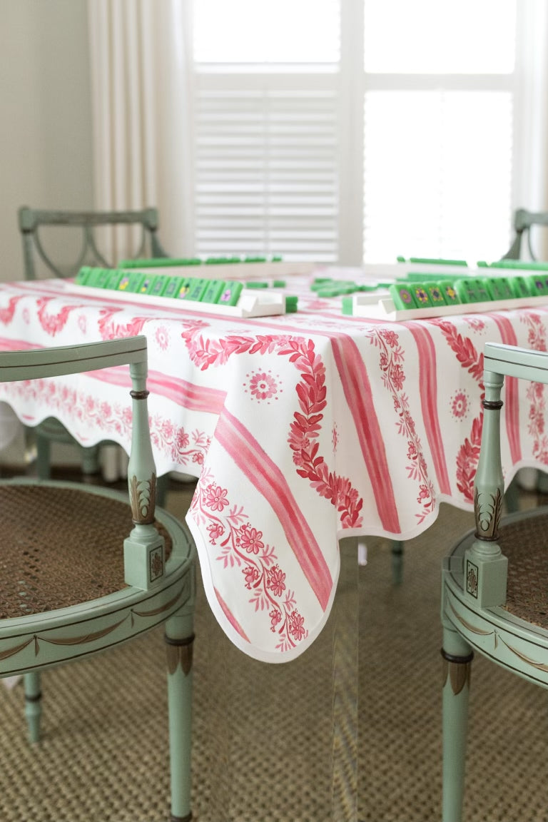 Scalloped Square Table Topper | Boxwood Garden - Rose