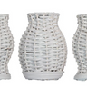Set of 3 Mini White Wicker Vases