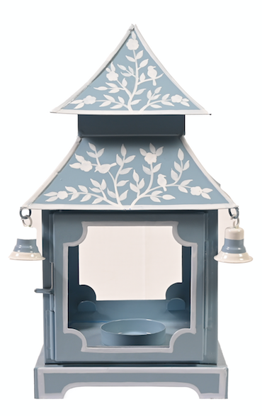 Soft Blue & White Bird & Vine Pagoda Lantern