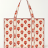 This 100% quilted cotton tote is hand block-printed and features internal pockets—perfect for everyday use or a weekend getaway. Limited quantities! Made by hand by artisans in India in limited patterns and batches.