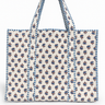 This 100% quilted cotton tote is hand block-printed and features internal pockets—perfect for everyday use or a weekend getaway.