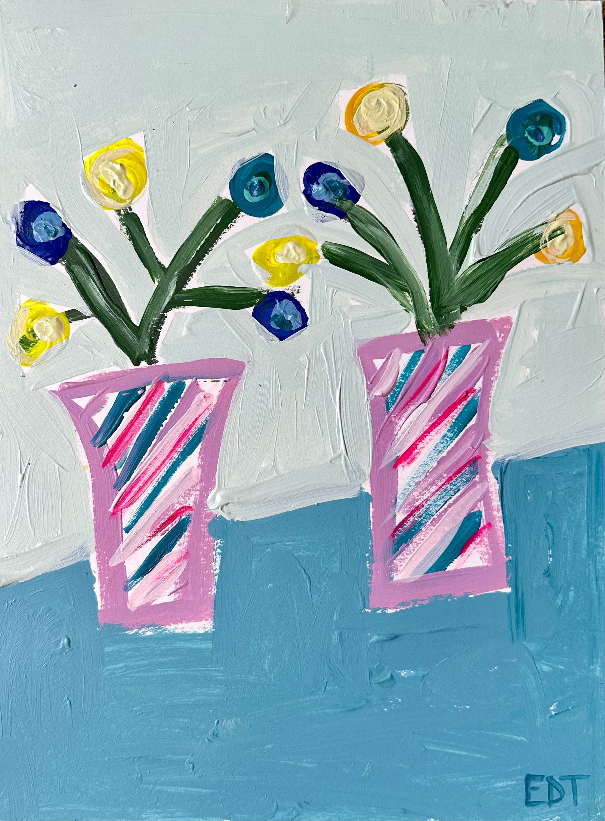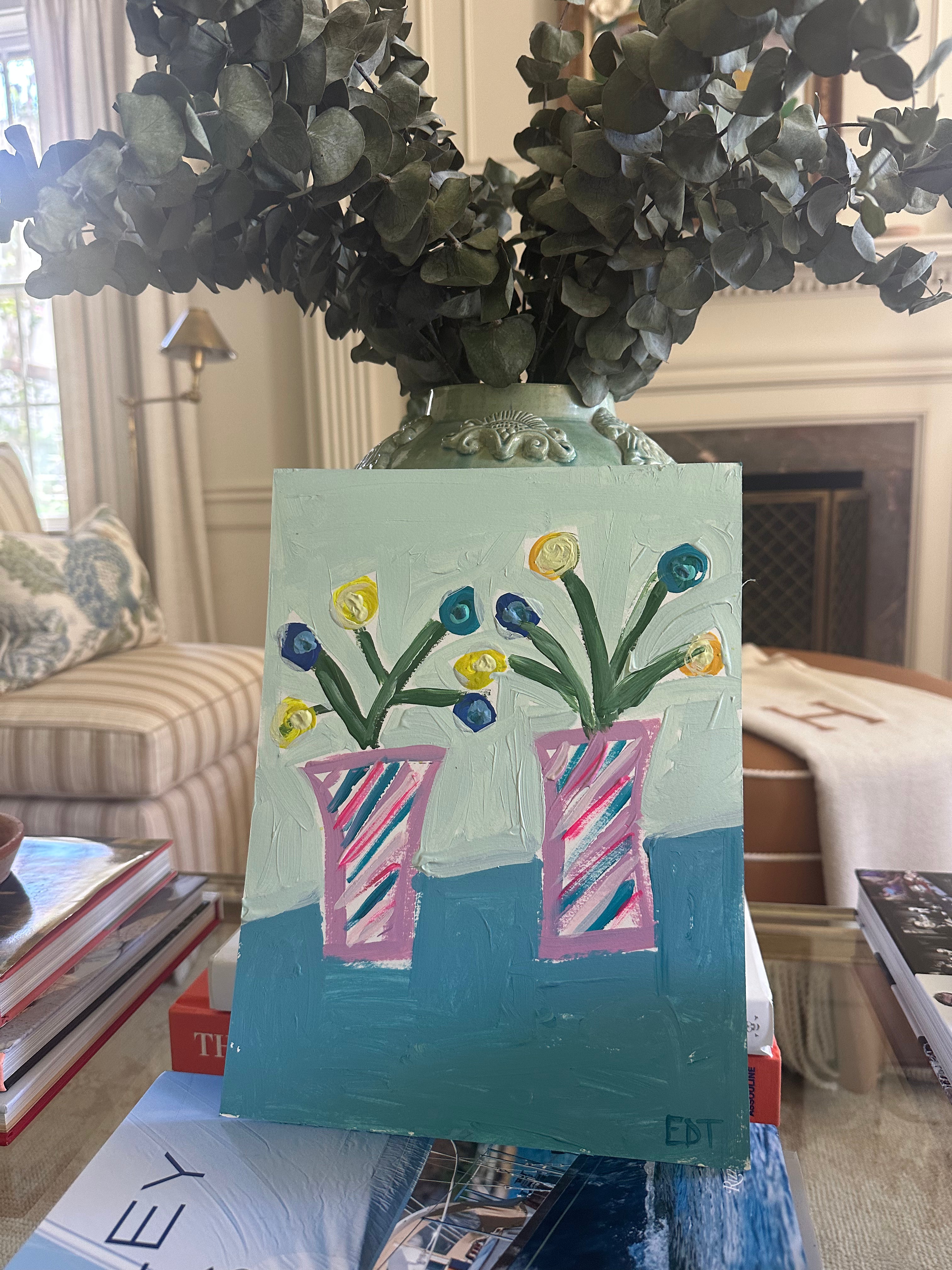 Posies in Pink and Green Striped Vases