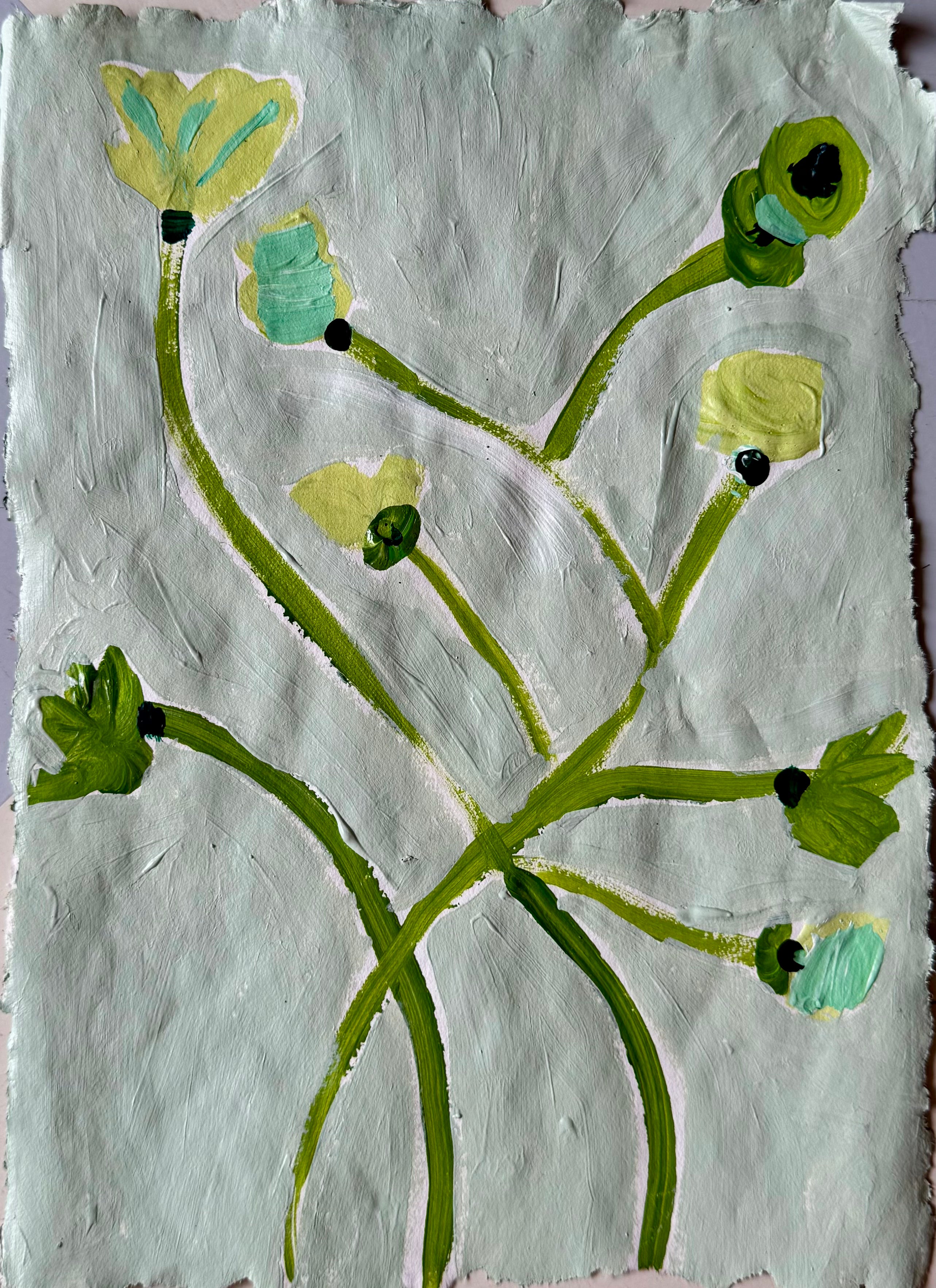 12x9 original acrylic painting on deckled edge handmade paper. This painting is oriented to hang vertically. Will be signed on the back unless otherwise specified.