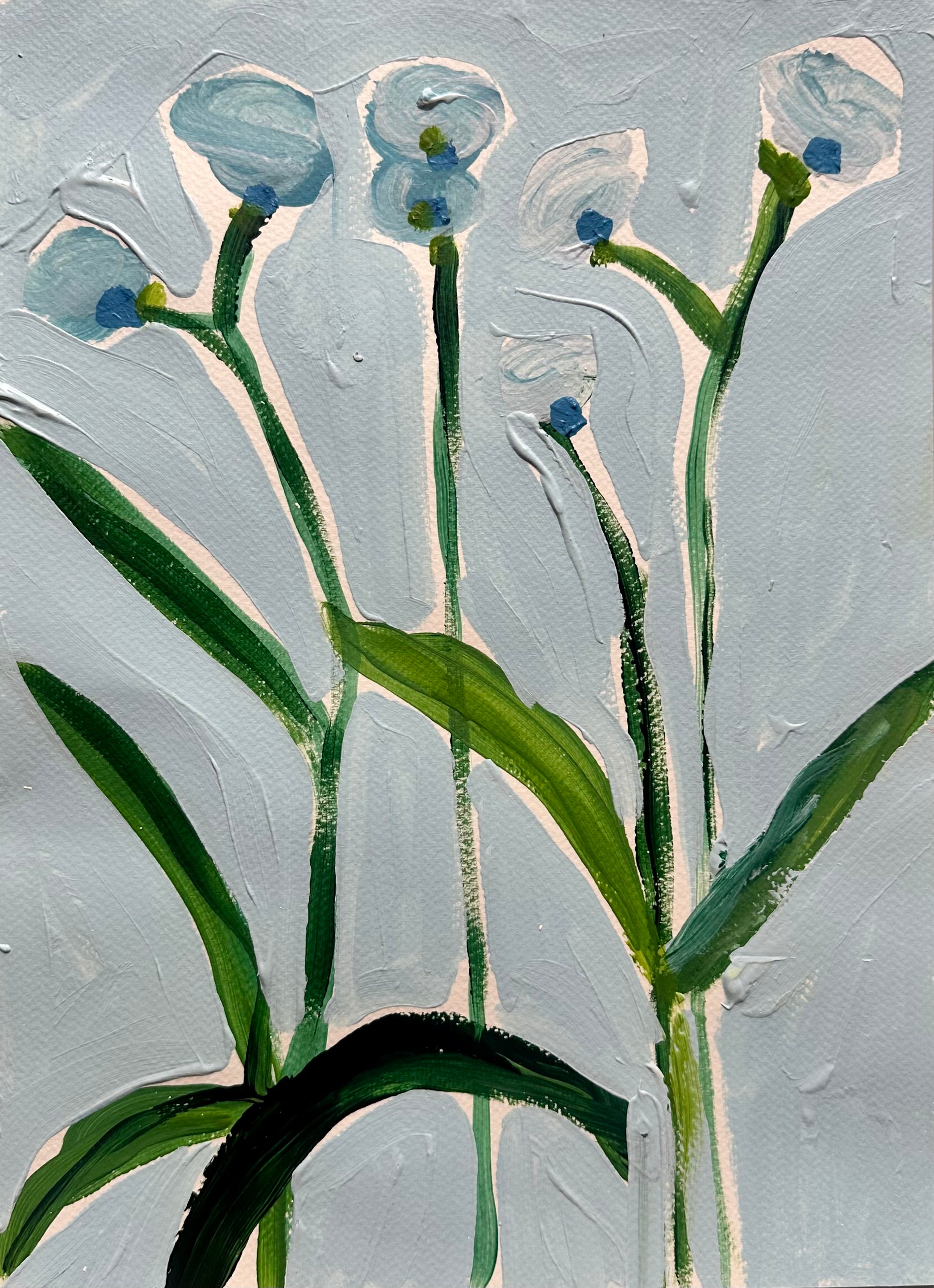 Original acrylic painting on cold press watercolor paper. Blue background. Signed on back unless otherwise specified. 15.25 x 11 inches.