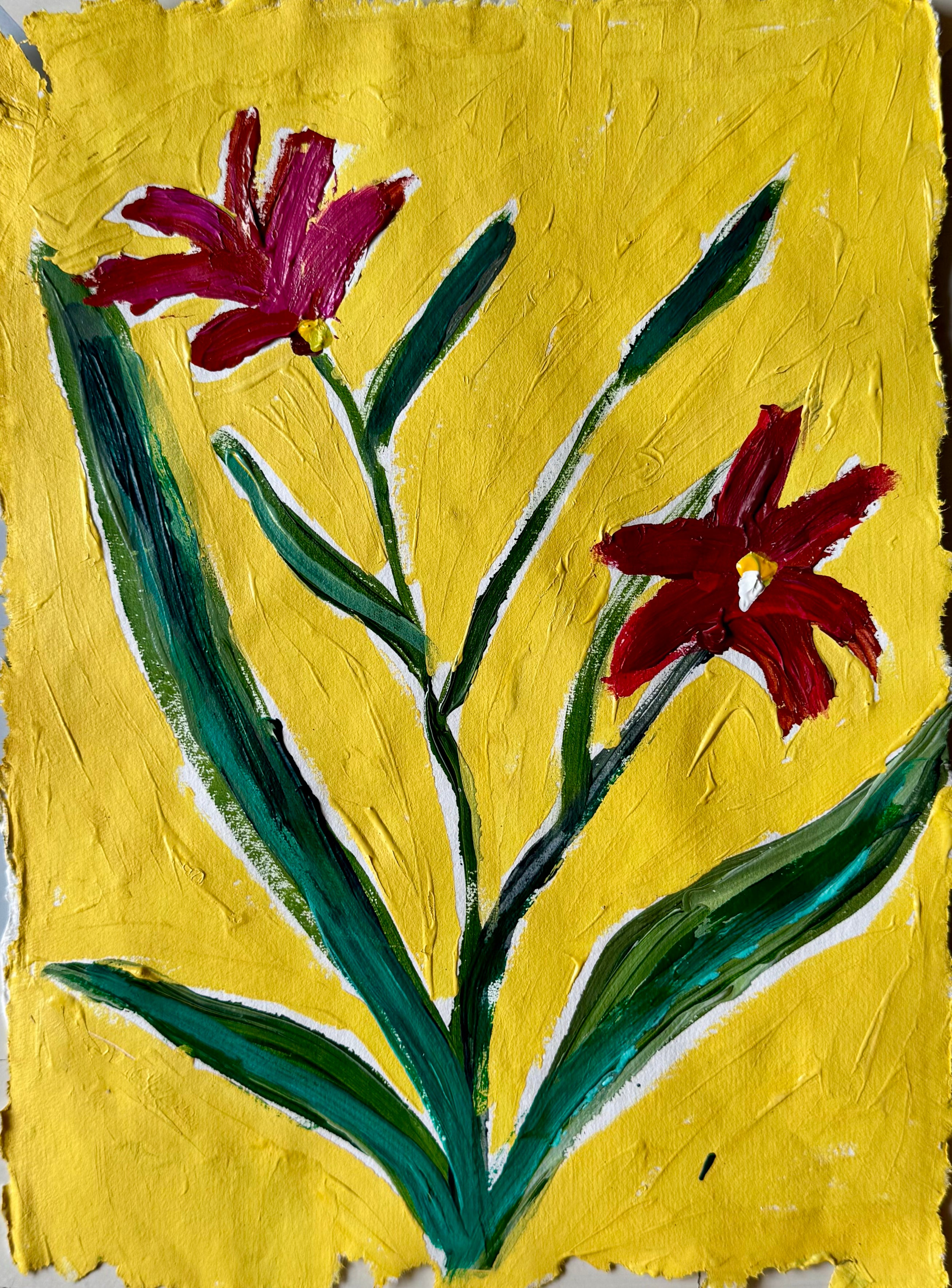 12x9 original acrylic painting on deckled edge handmade paper. This painting is oriented to hang vertically. Will be signed on the back unless otherwise specified.