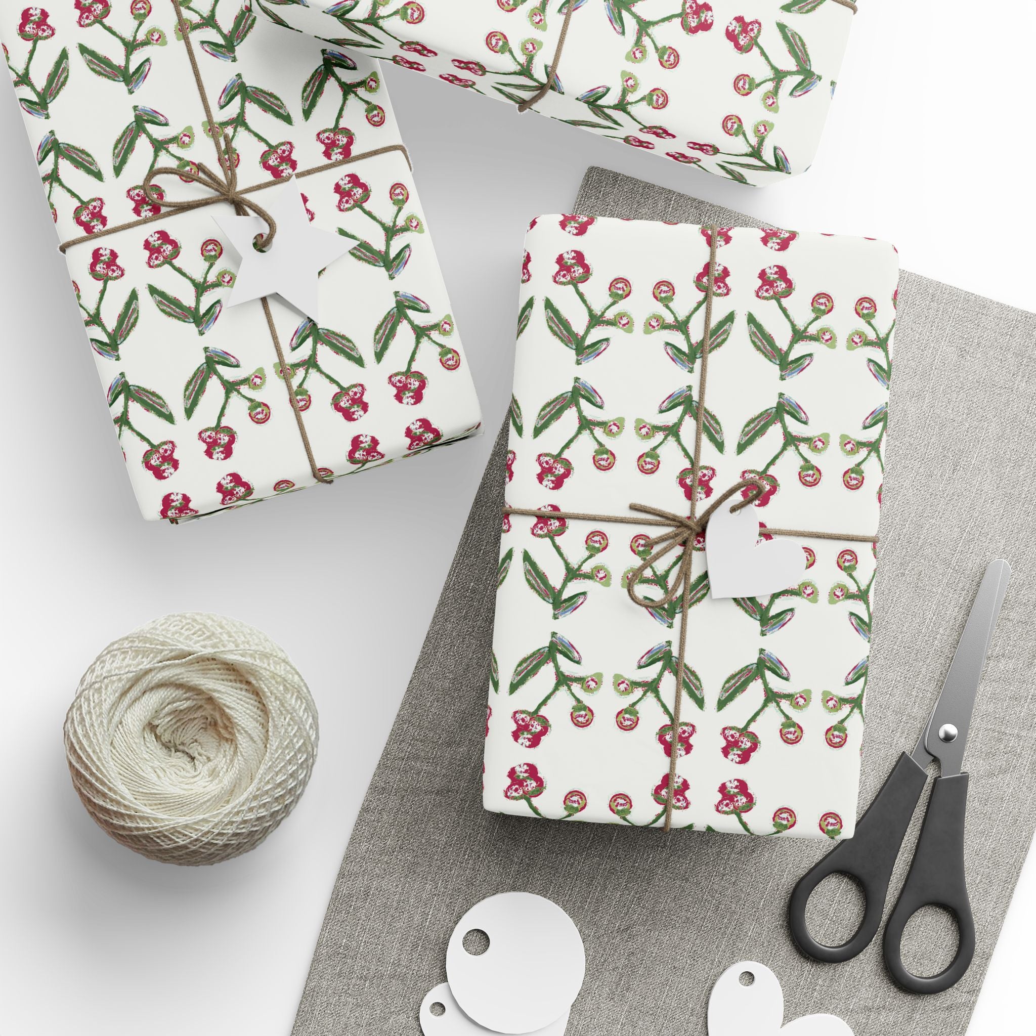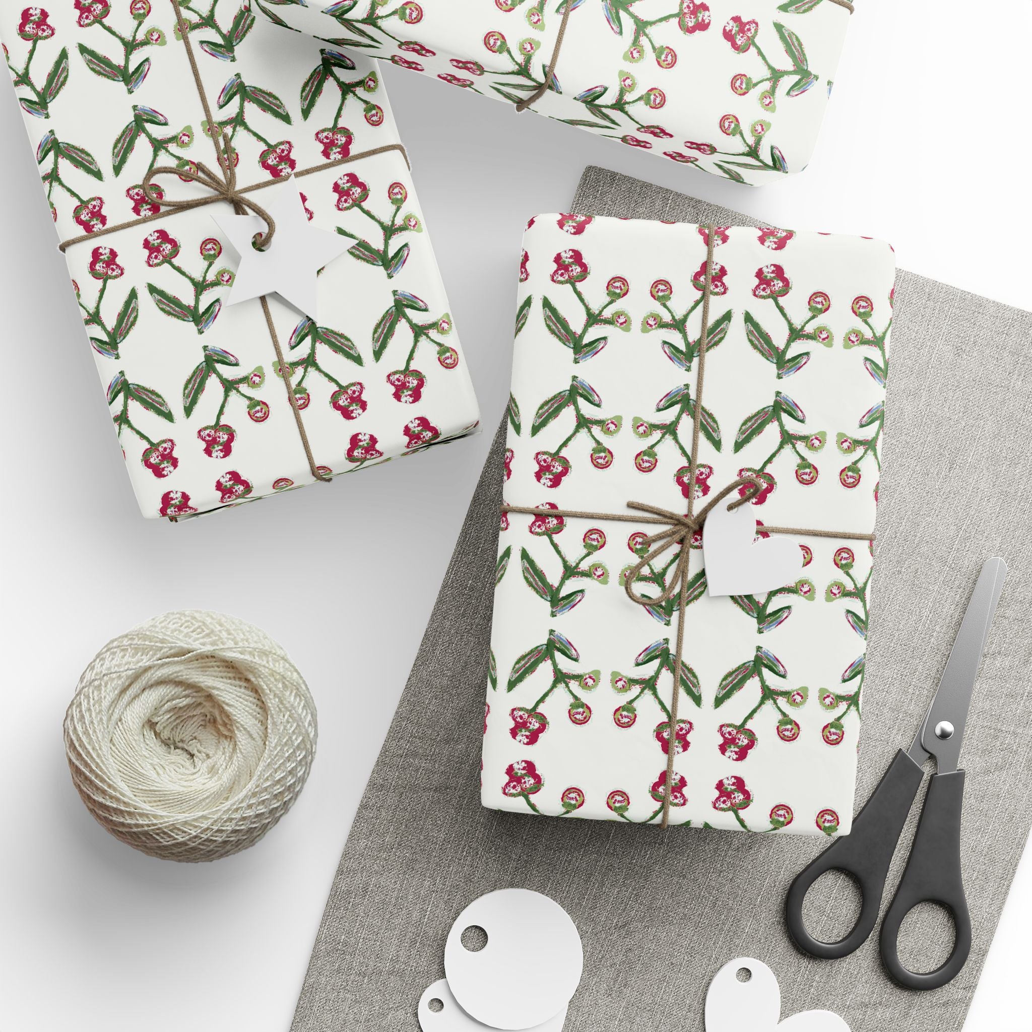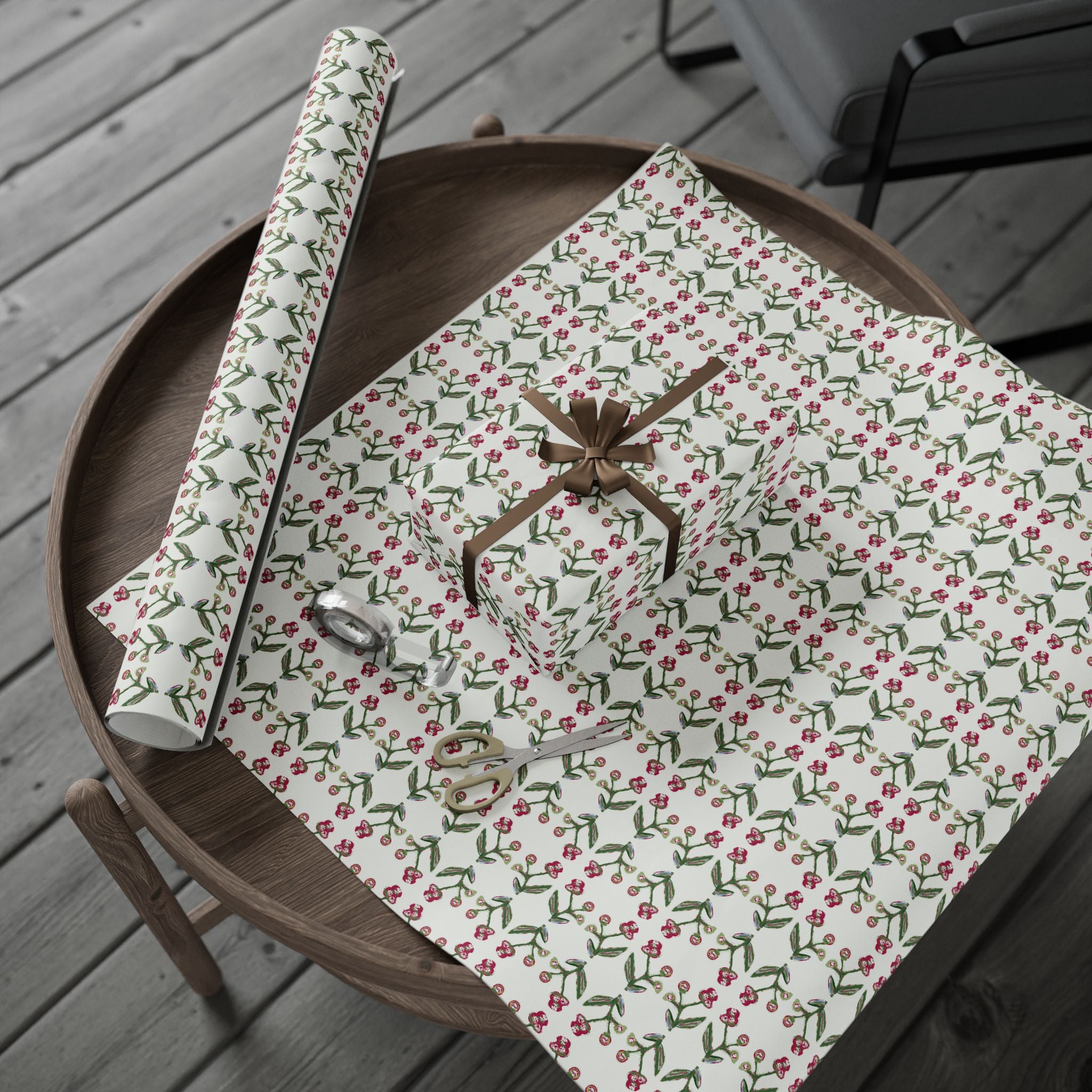 Elevate your gift-giving with our Antonia pattern wrapping paper by Erin Donahue Tice in festive holiday colors. The sophisticated signature pattern in holiday berry and green exudes elegance and charm, perfect for adding a festive touch to your presents during the holiday season. Ideal for those who appreciate stylish and unique wrapping papers.