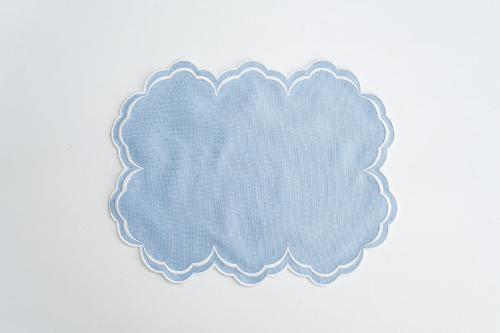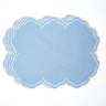 Brighten your table with the delightful Aquelle Placemat. Crafted from a premium cotton blend and delicately finished with blue wavy scalloped embroidery, this design adds a touch of classic elegance to any gathering. Perfect for everyday meals or special occasions.