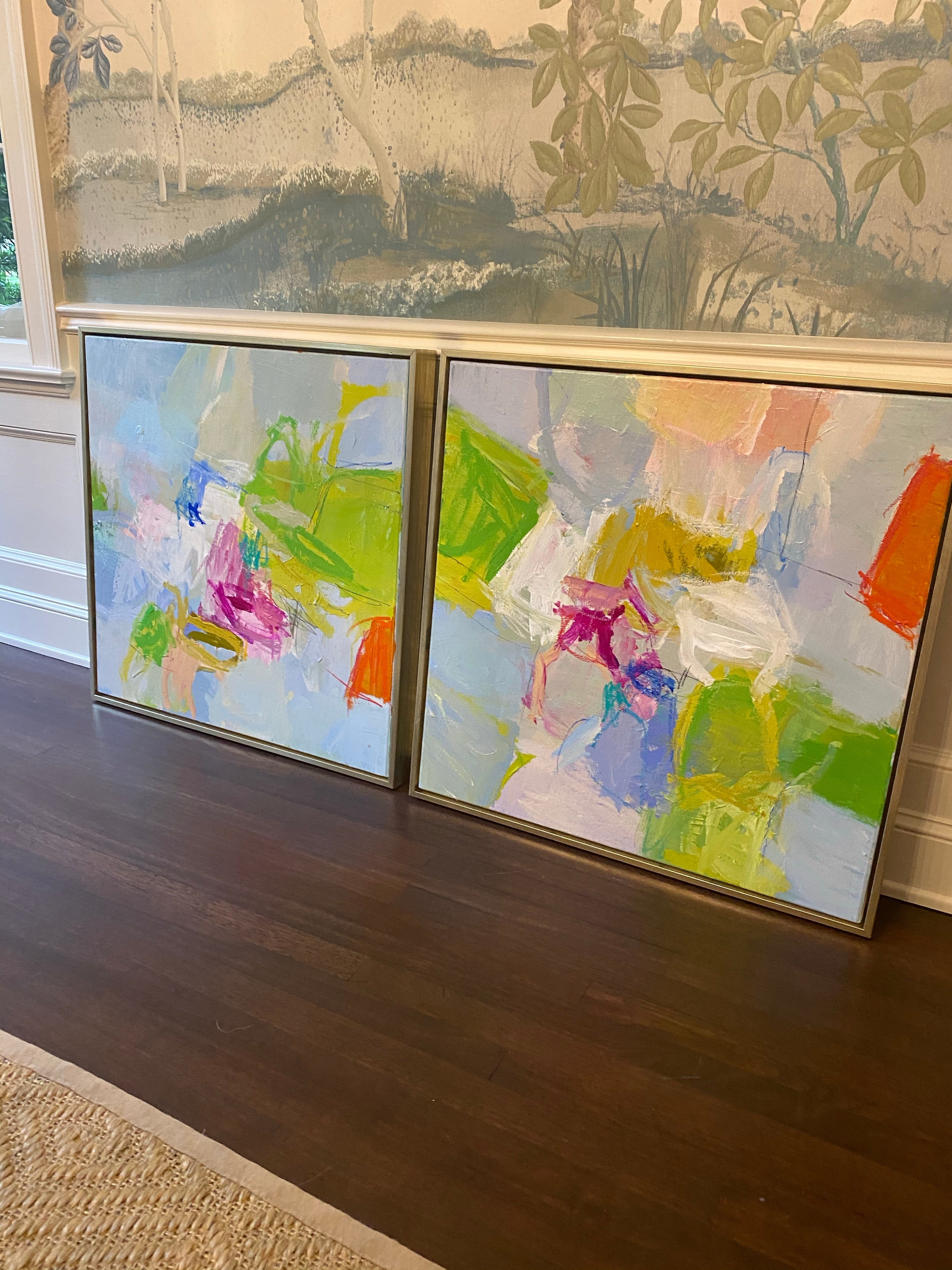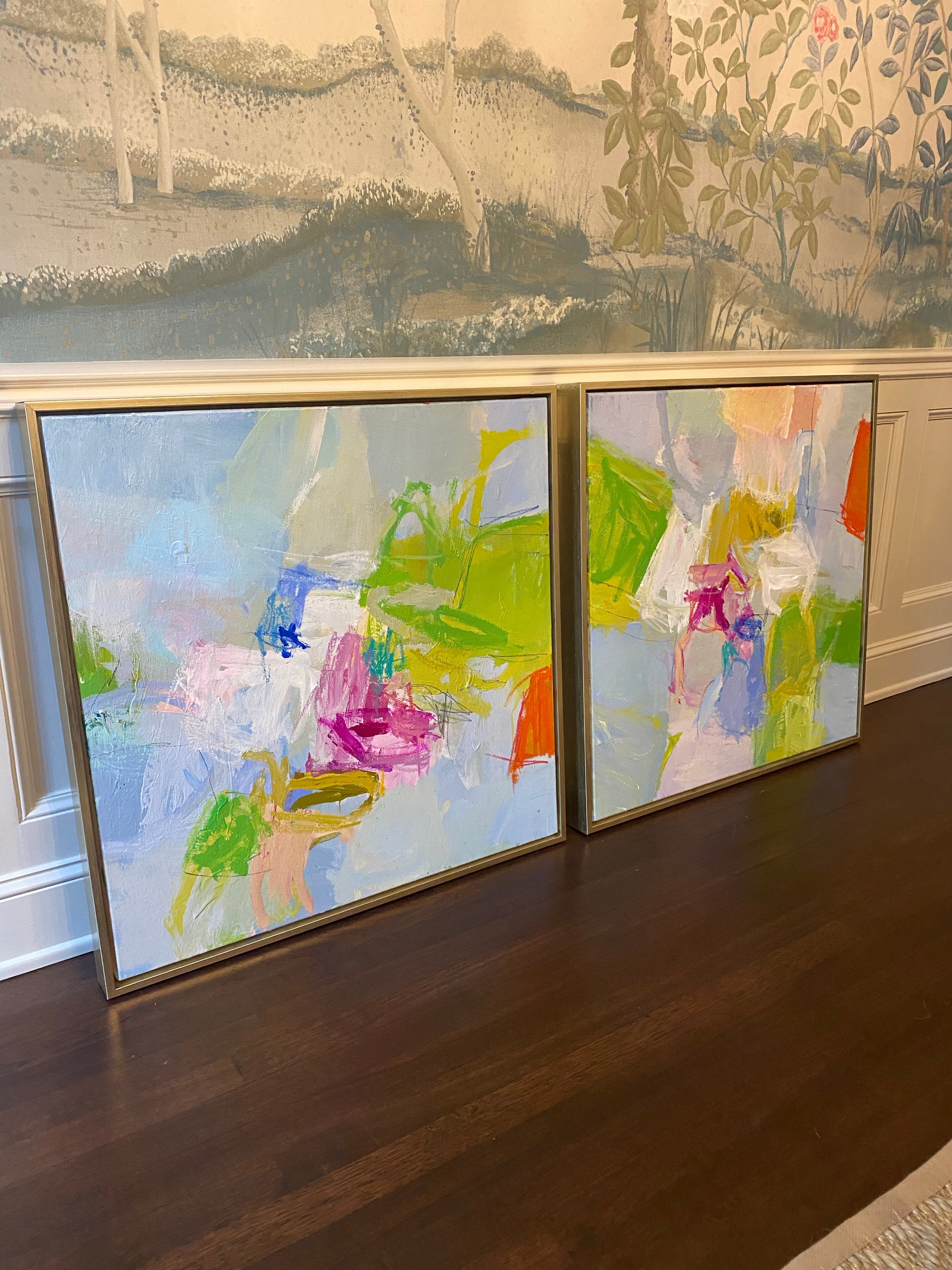 Mixed media on canvas. Framed in custom gold float frames.