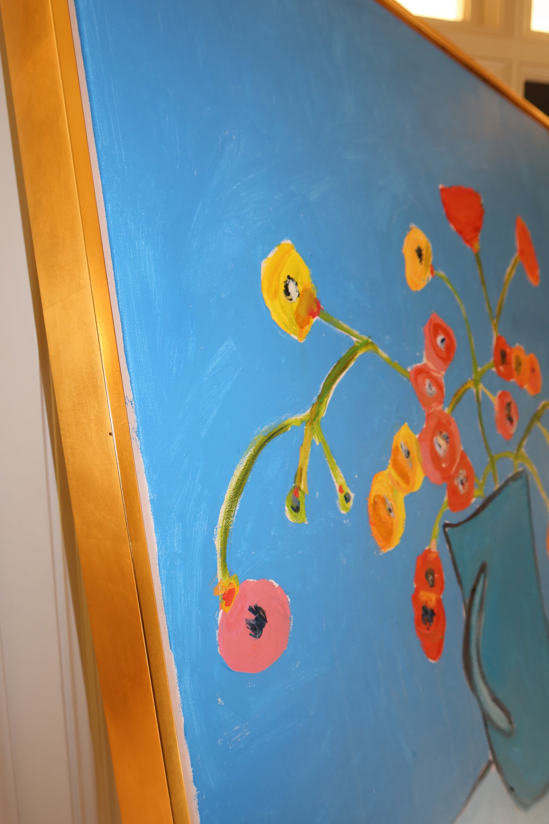 48x36 inch original painting. Mixed media on canvas. Highly textured. Custom framed in gold float frame. Signed by artist on the back of painting. Can be signed on the front upon request.