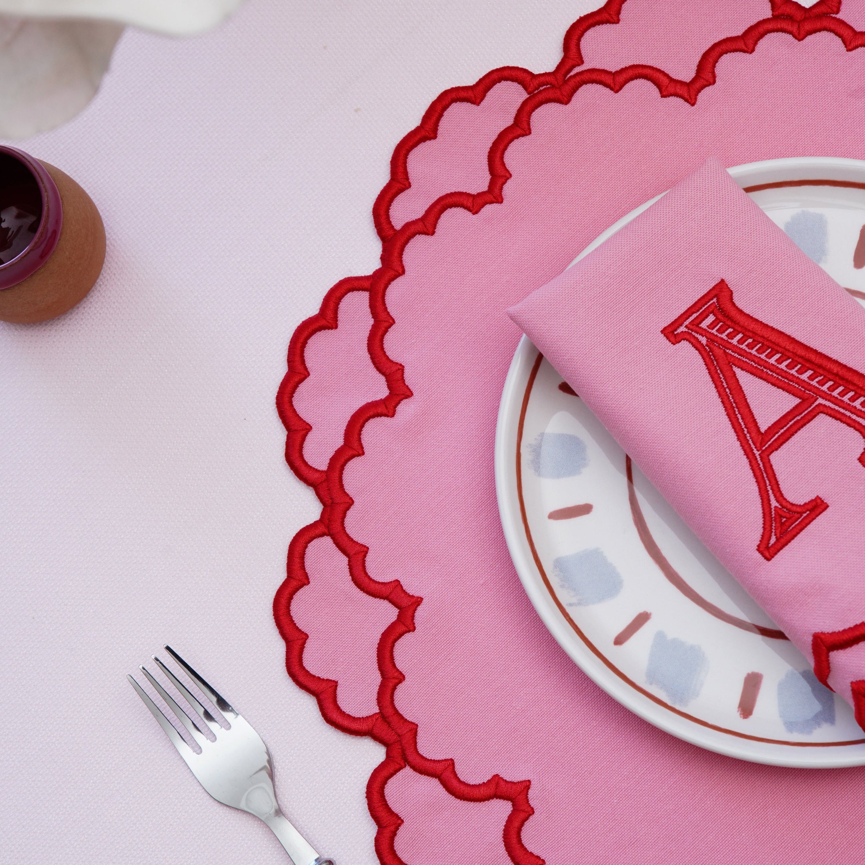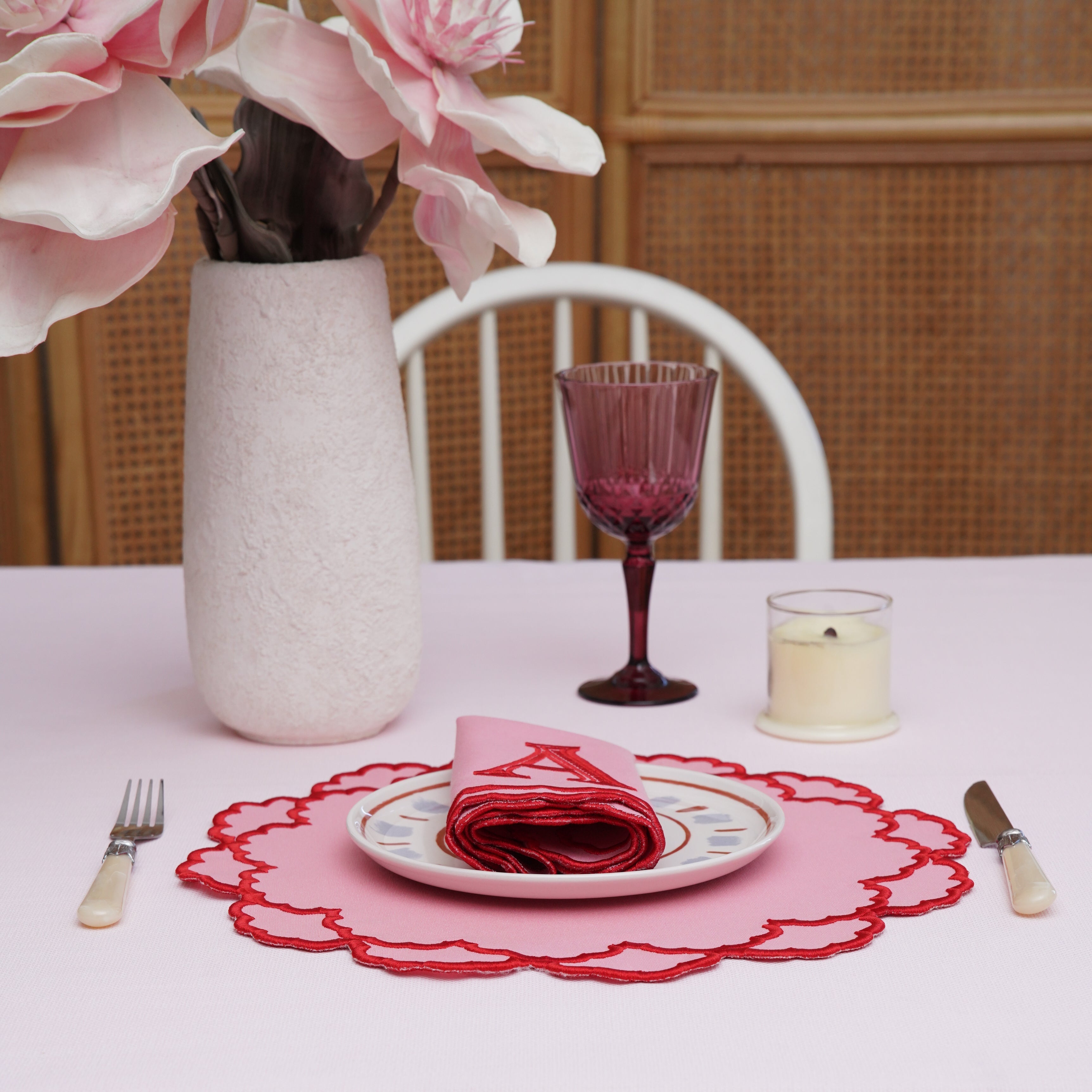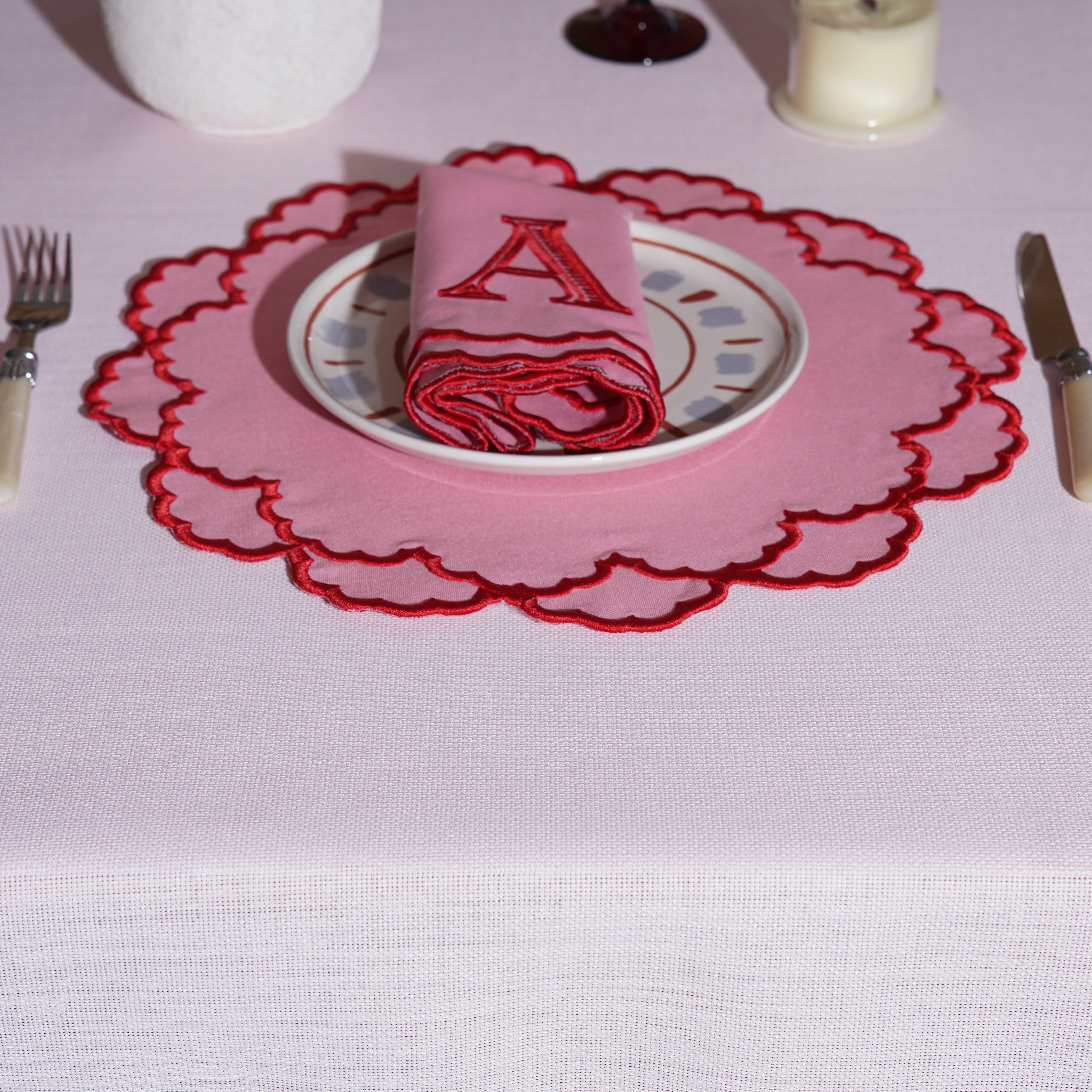 CRESSIDA PINK ROUND FABRIC PLACEMAT & NAPKIN SET