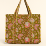 This 100% cotton canvas tote is hand block-printed and features both internal and external pockets—perfect for everyday use or a weekend getaway.