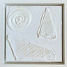 10x10 inch textured canvas painting, custom framed in white float frame. Wired to hang. Can also rest on a bookshelf or table since the frame is self standing.