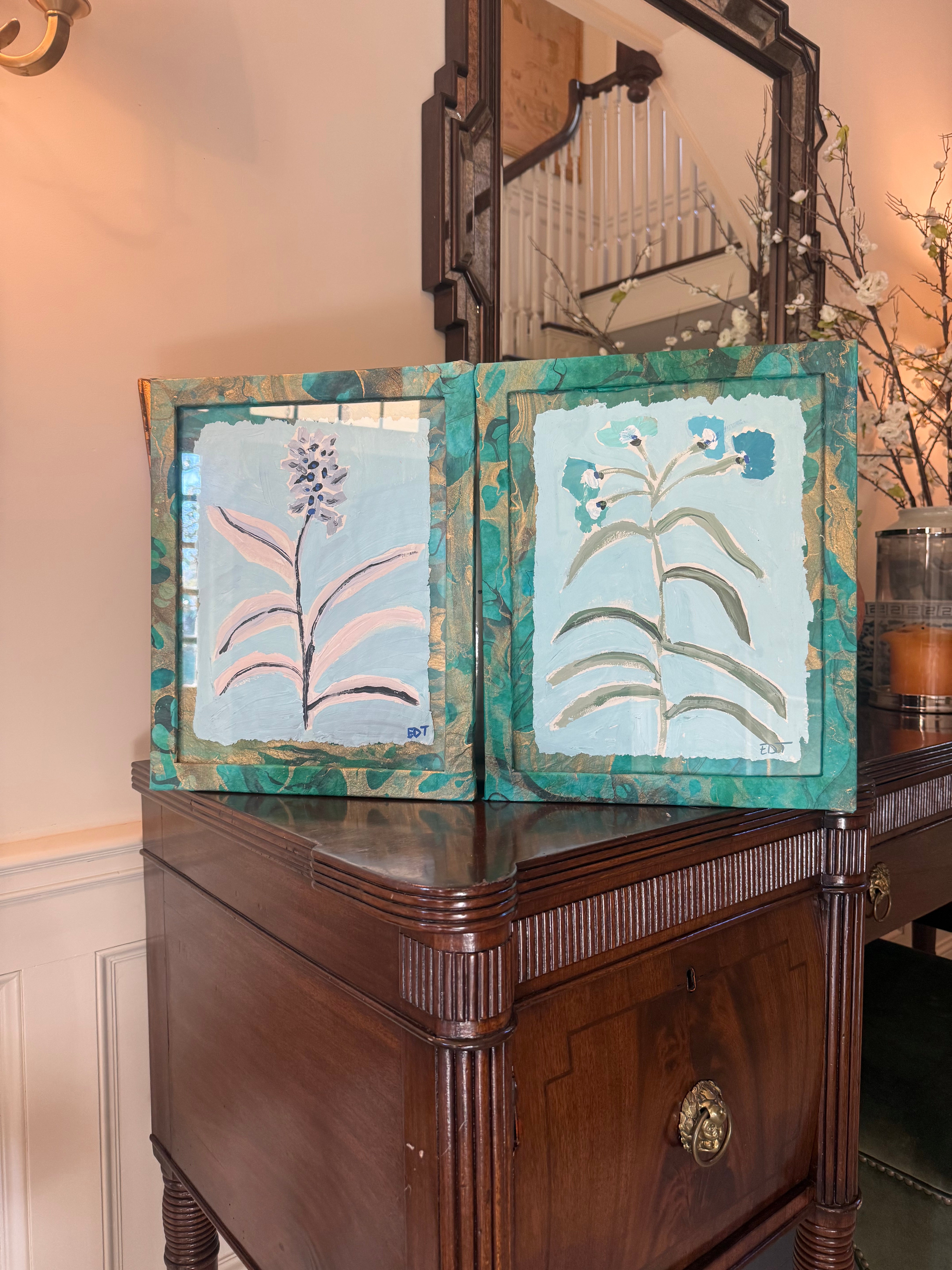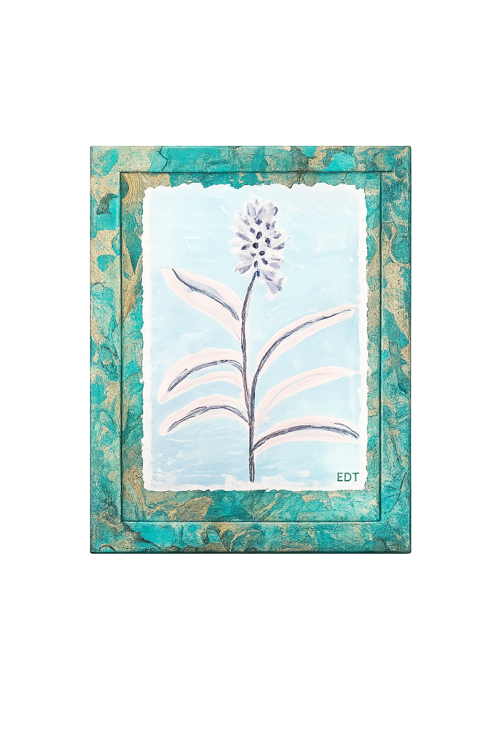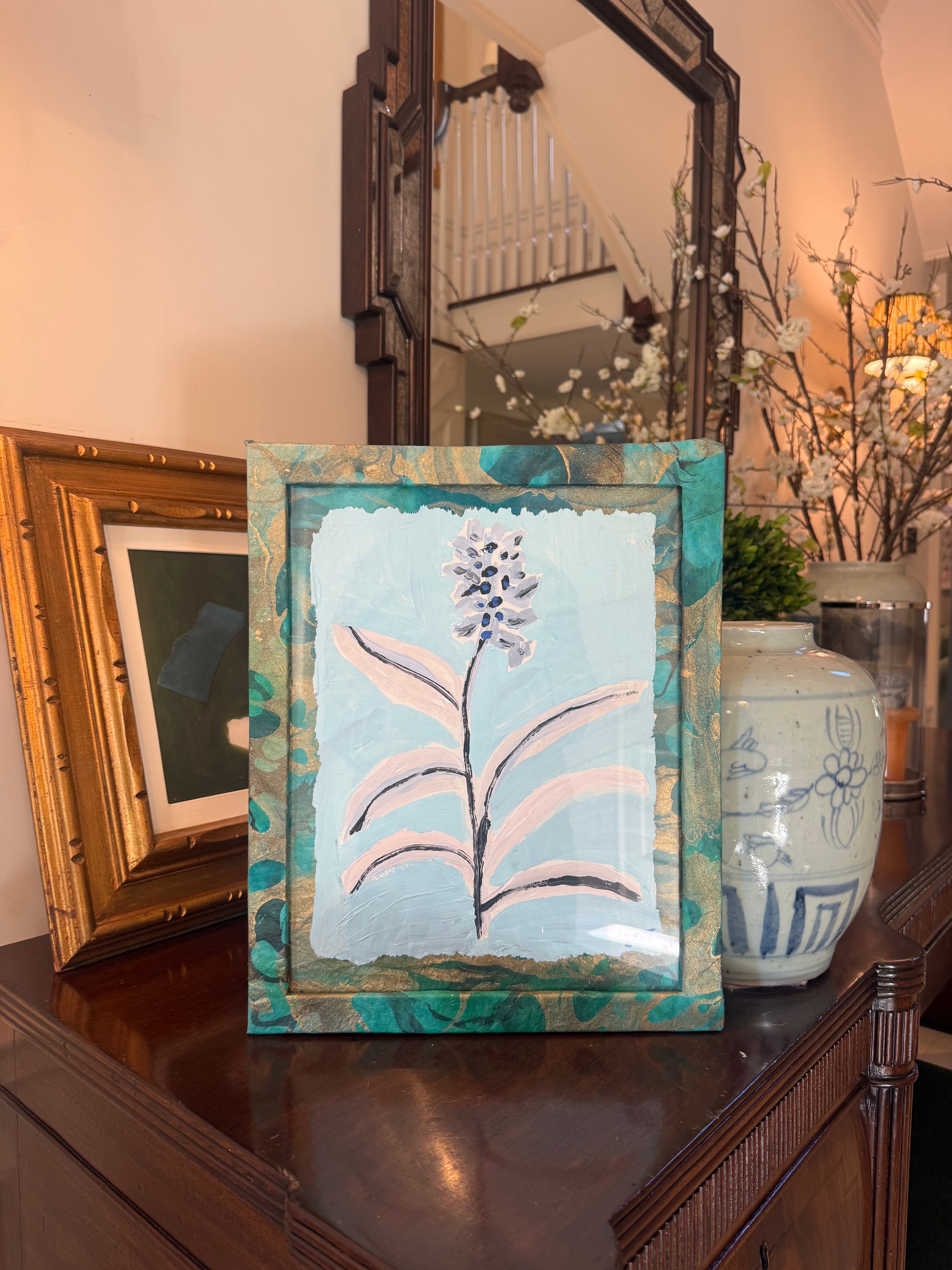 This is an original mixed media painting on canvas board created by Erin Donahue Tice. The total framed size is 15.75 × 12.75 inches. It is presented in a hand-wrapped frame; due to the handmade nature of the wrapping, slight imperfections may be present. This piece is ready to hang vertically and signed on the front.