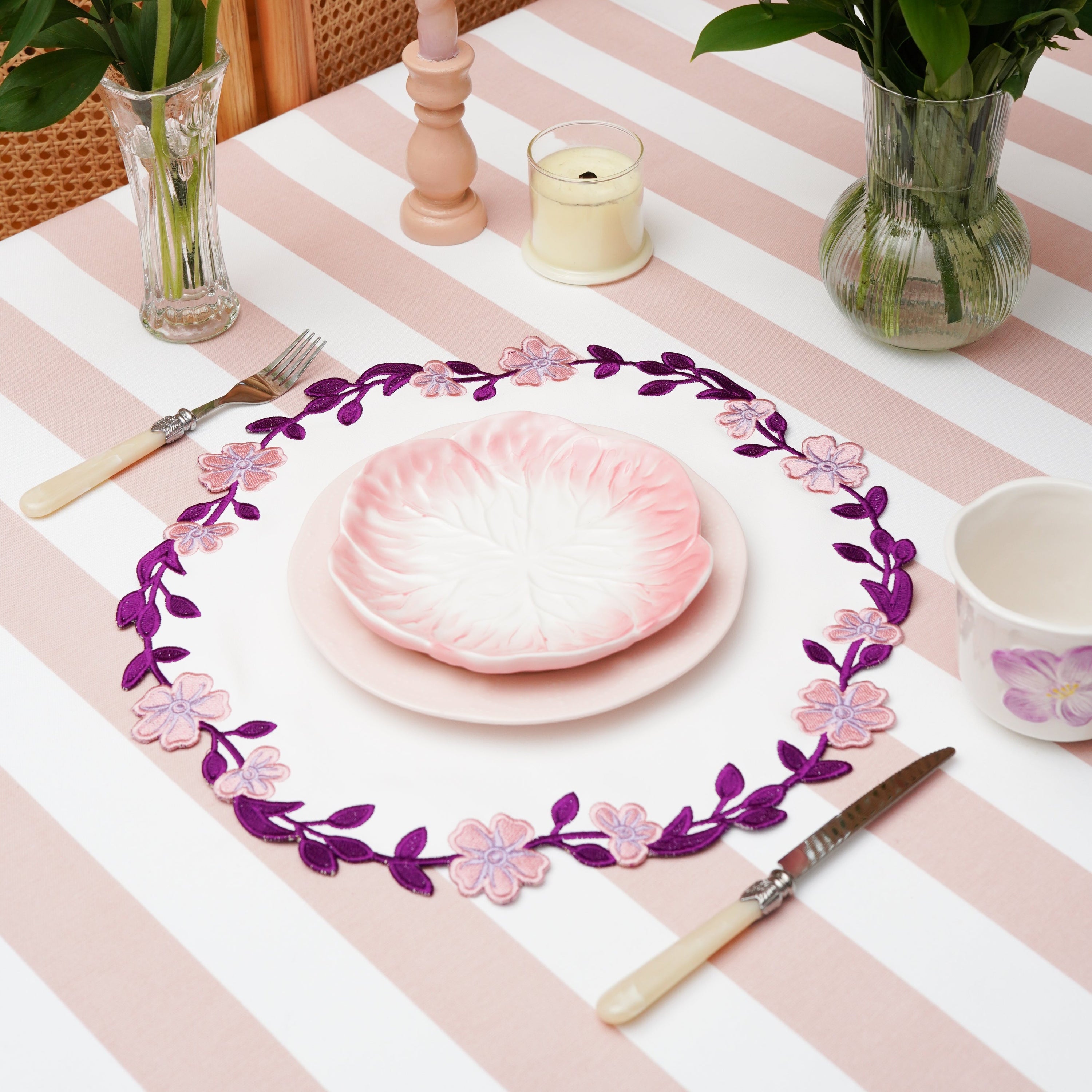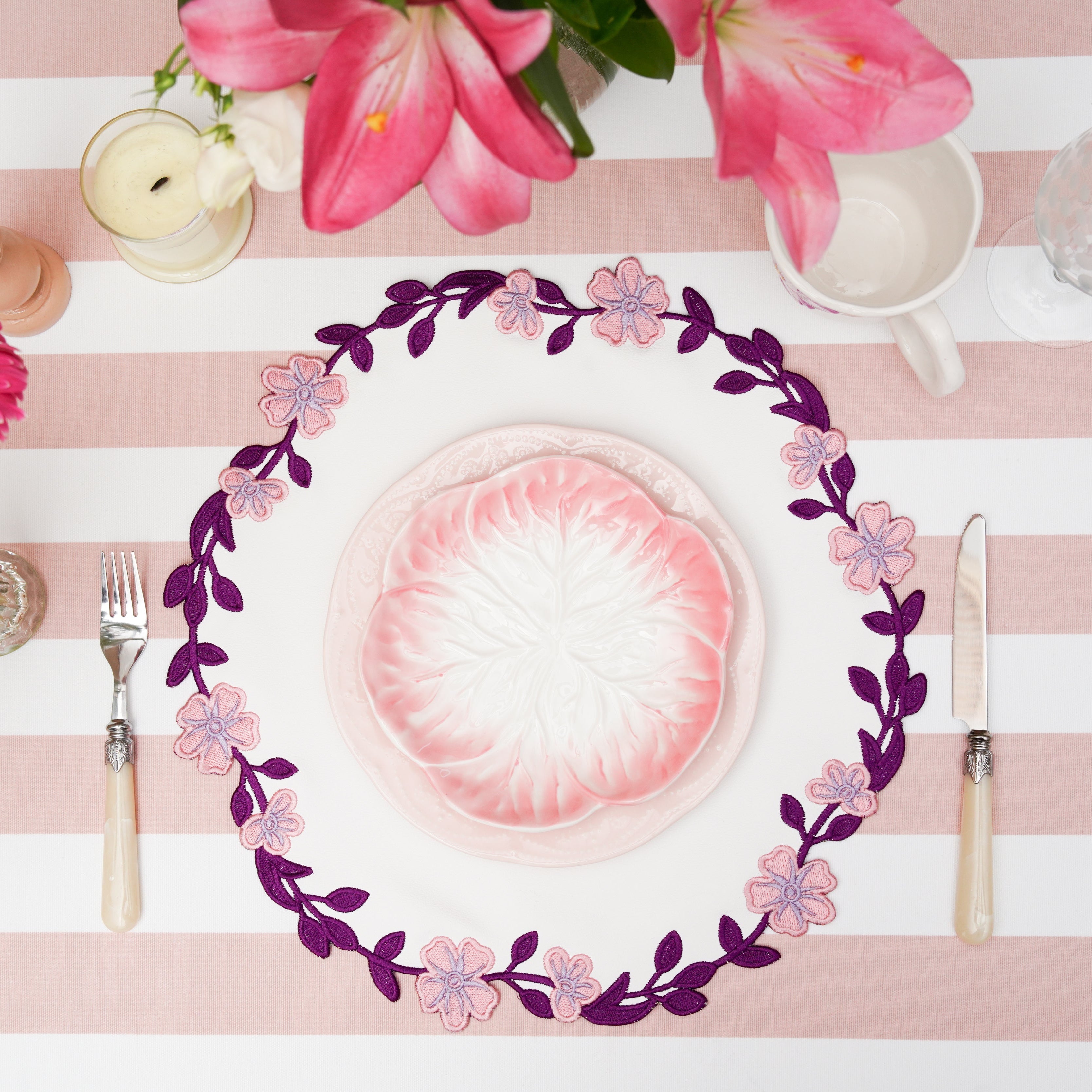 - Elegant embroidery for a refined table